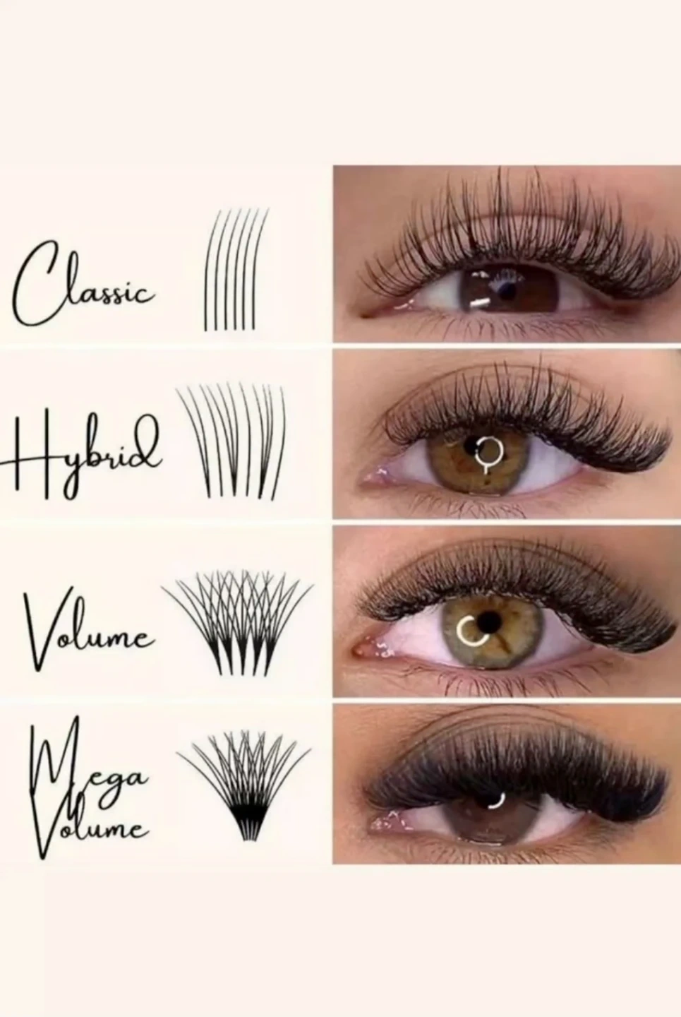 Classic, Hybrid, Volume, Mega Volume Eyelash Styles