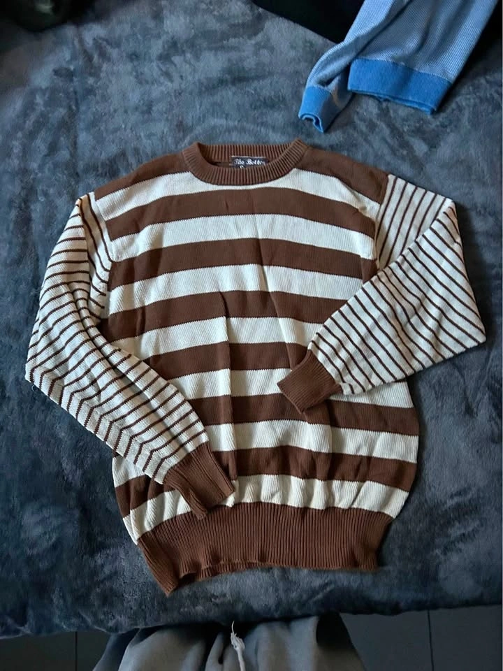 Brown & White Striped Knitted Sweater