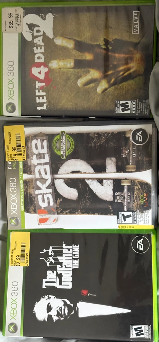 Xbox 360 5 Games Gems - Skate 2 / Godfather 1, 2 / Left 4 Dead 2