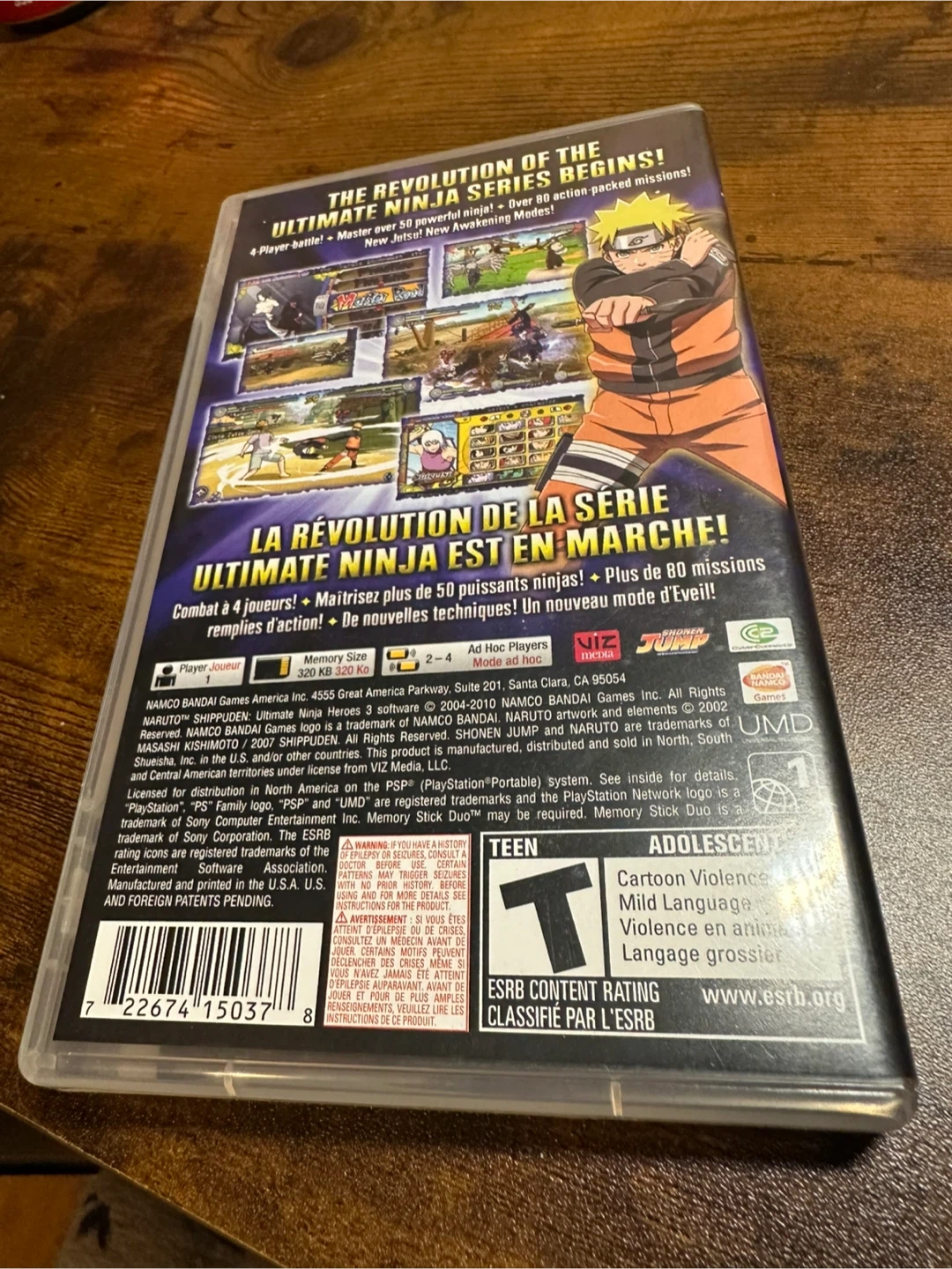 This is the Naruto Shippuden: Ultimate Ninja Heroes 3 game for the PSP. It's complete with the original case and UMD disc.