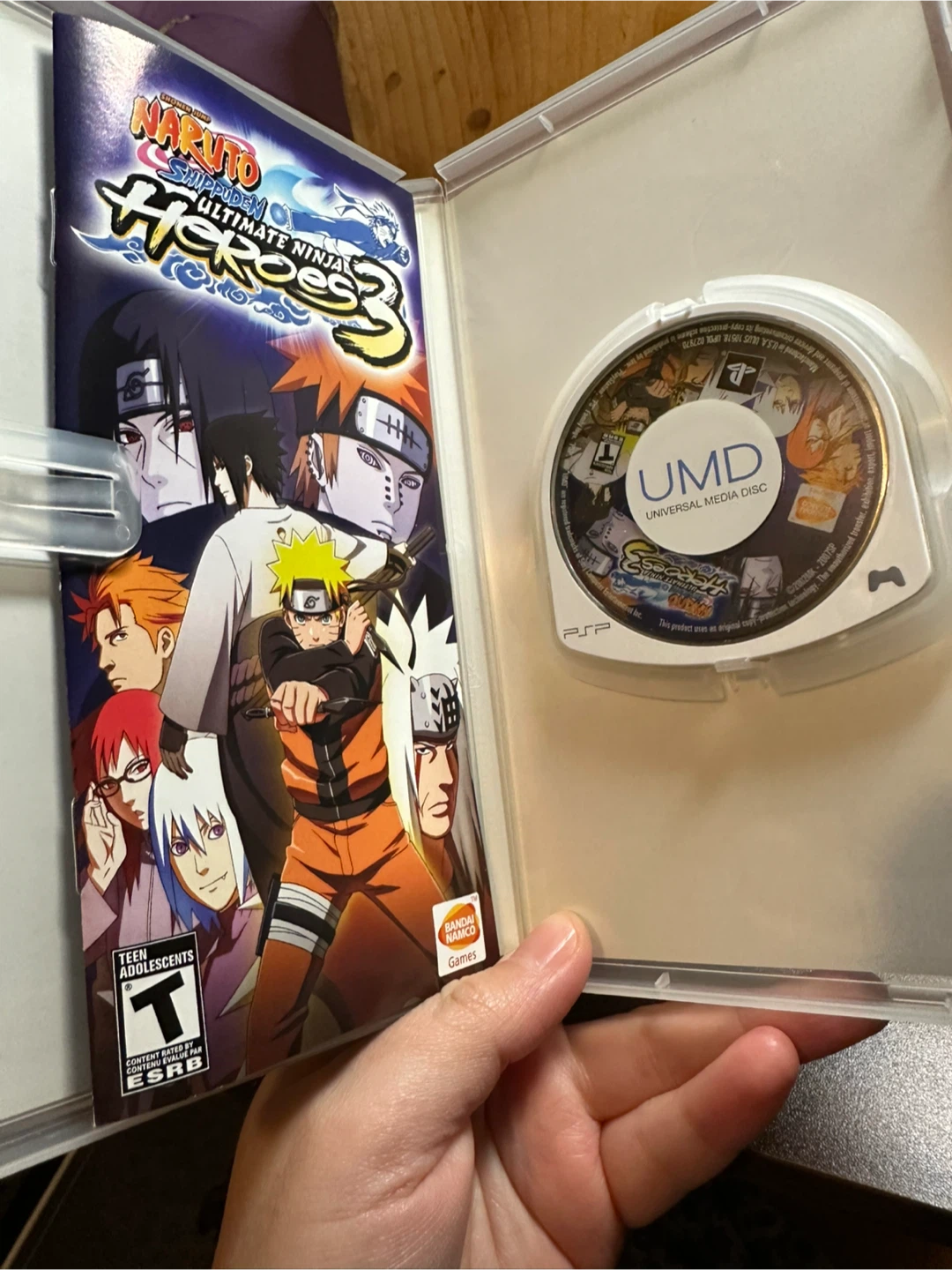 This is the Naruto Shippuden: Ultimate Ninja Heroes 3 game for the PSP. It's complete with the original case and UMD disc.