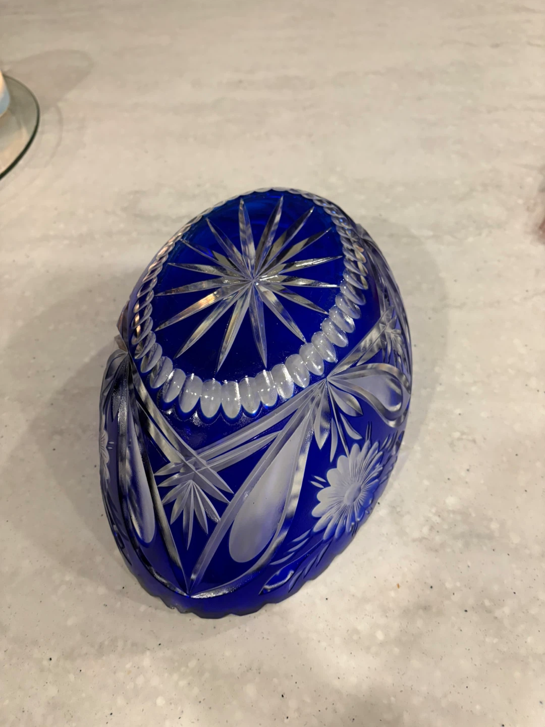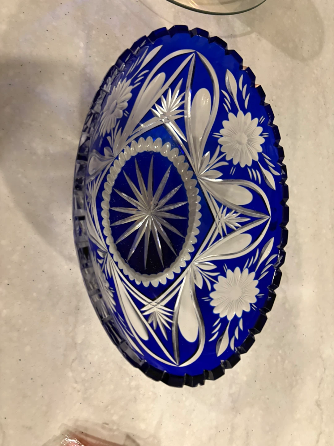 Large Vintage Bohemian Cobalt Blue Cut Crystal