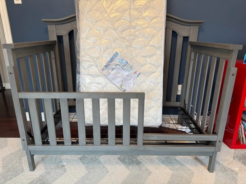 Originally paid $2000. This is the crib piece (not shown) the toddler bed attachment. The dresser can be used alone or with the change table attachment. Lastly the Simmons Beautyrest mattress still sealed - one side for babies up to 12 months and the other for toddlers 12+ months. I also have a Kushies changing pad in mint condition if you wanted for an additional price. Located at Yonge and Elgin Mills. Pick up only.