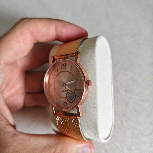 Add a touch of romance to your wrist with this lovely rose gold women's watch, featuring a charming heart design and a sleek golden metal strap. This watch is brand new and ready to accessorize your favourite outfit. Colour: Rose Gold. Strap Material: Golden Metal. Design: Heart accents on the face. If you're seeing this ad, the watch is still available. Pick up in Halifax. I have other options available, check my ads by pressing "Seller details" below. Cash accepted.
