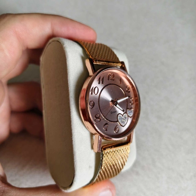 Add a touch of romance to your wrist with this lovely rose gold women's watch, featuring a charming heart design and a sleek golden metal strap. This watch is brand new and ready to accessorize your favourite outfit. Colour: Rose Gold. Strap Material: Golden Metal. Design: Heart accents on the face. If you're seeing this ad, the watch is still available. Pick up in Halifax. I have other options available, check my ads by pressing "Seller details" below. Cash accepted.