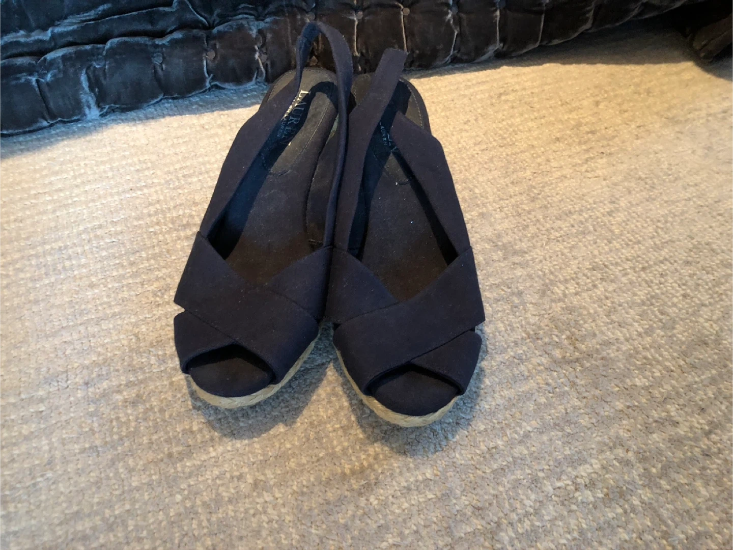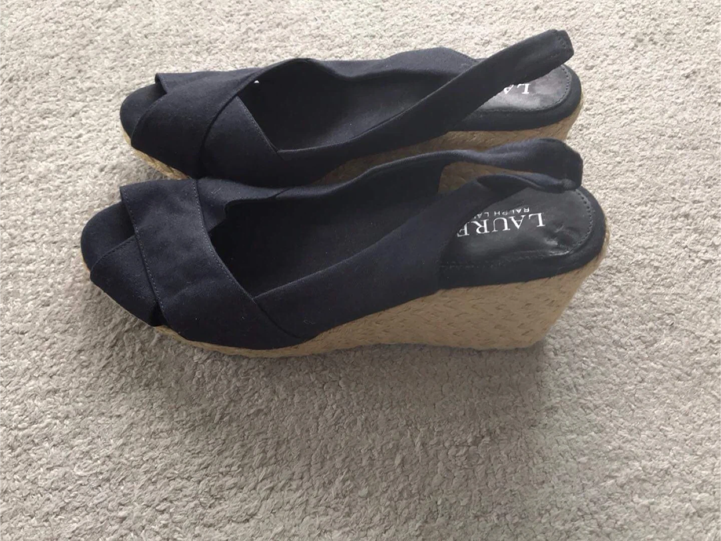Cute pair of Ralph Lauren wedge sandals in a lovely blue colour! They are a size 9B and feature a comfortable wedge heel. Perfect for adding a touch of style to your summer outfits