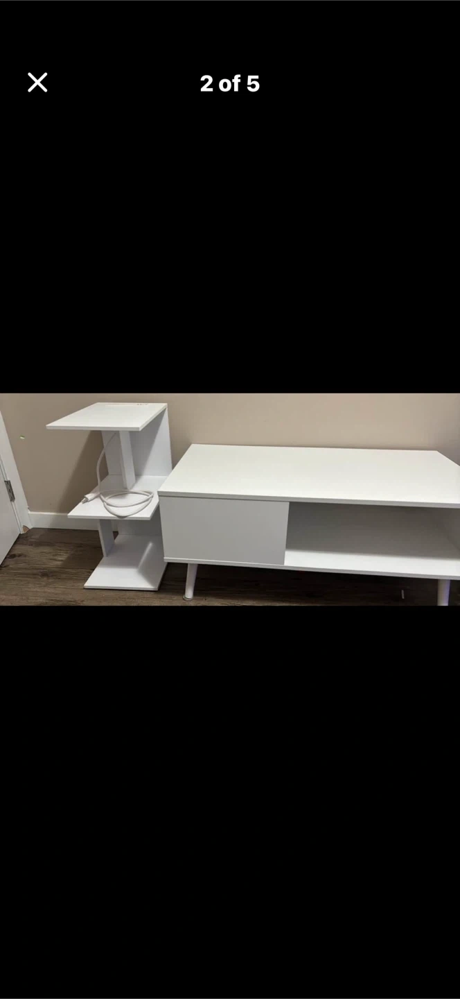 Sold together. The coffee table is a modern white with no damage to it very sturdy and great condition. The side table has a magnetic LED light and an extension chord to have a closer access to a charging port or plug in.