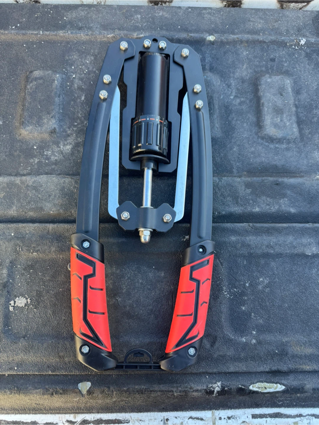This is an adjustable hydraulic arm exerciser. It features a strength adjustment dial from 20 lbs to 440 lbs. Red and black grips provide comfort during use.