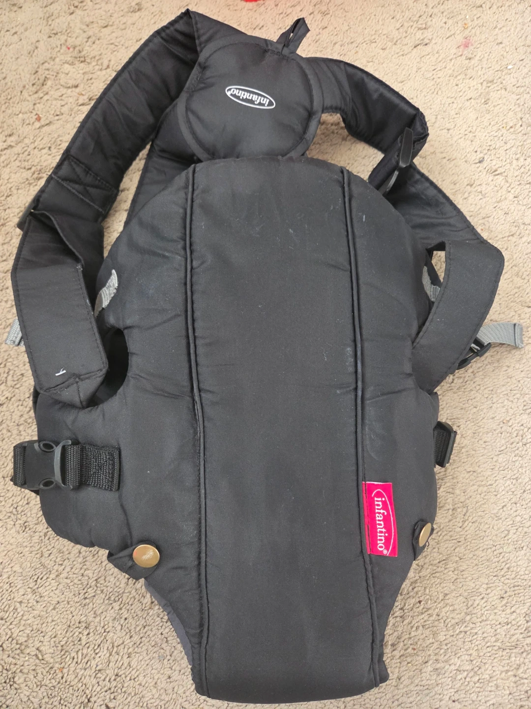This is a black Infantino baby carrier. It's made from durable fabric with adjustable straps for a secure fit. Not used more than 2 times.It's great for keeping your little one close while on the go!