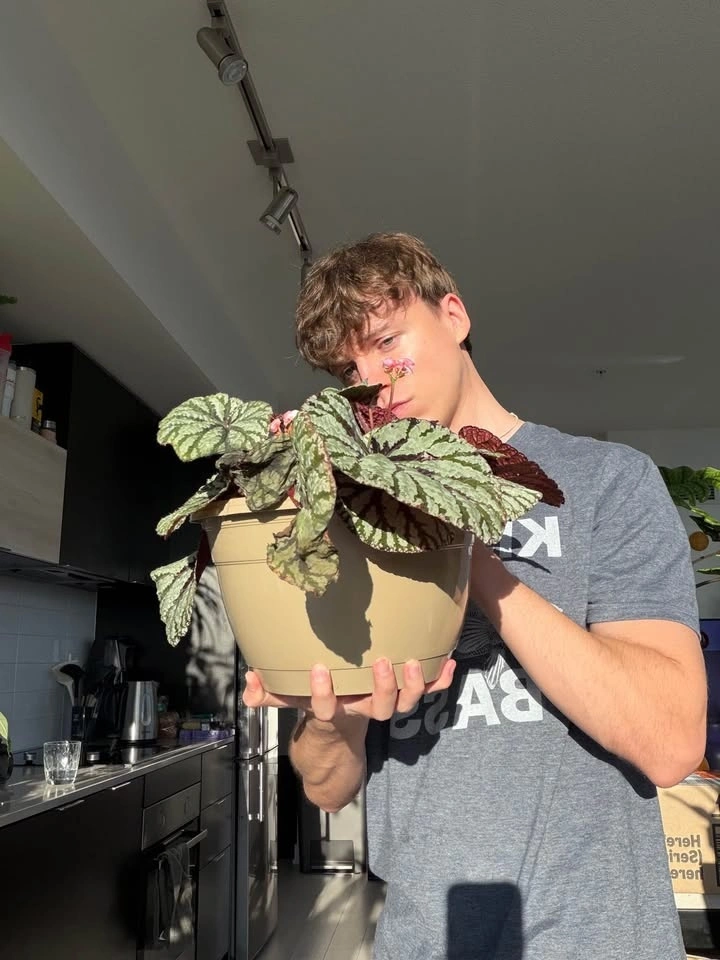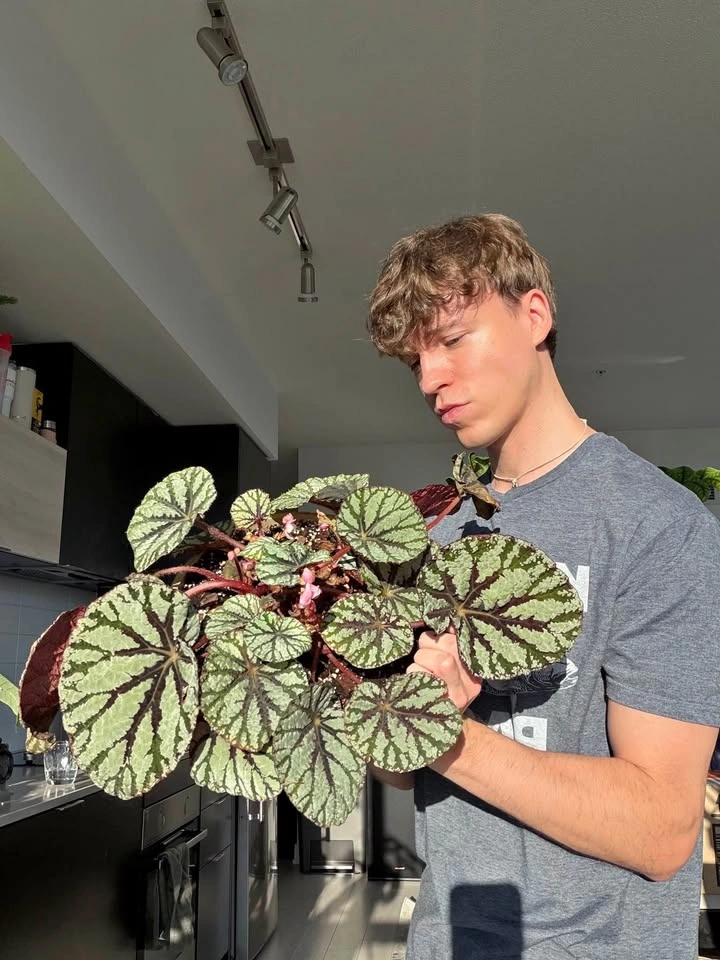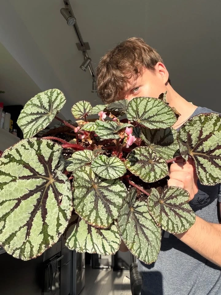 Easy-care houseplant known for its striking, silvery-green leaves with deep burgundy veins, native to Asia and grown for its colorful foliage, often with unique twirling growth. It thrives in bright, indirect light, well-draining soil, and moderate temperatures (60-70°F / 15-21°C), preferring the soil to dry slightly between waterings, and is considered heartier than some other rex begonias. Pick up by Kipling station, check my other listings.