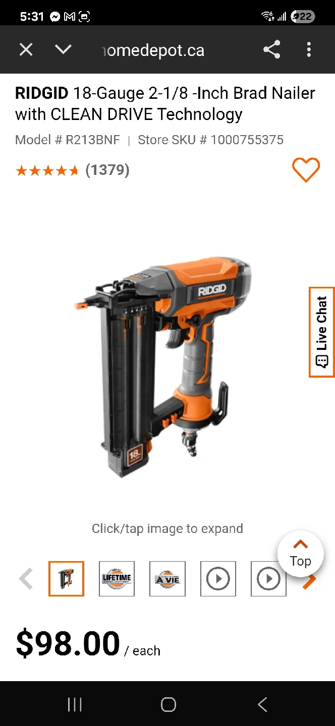 RIDGID Brad Nailer 18 Gauge