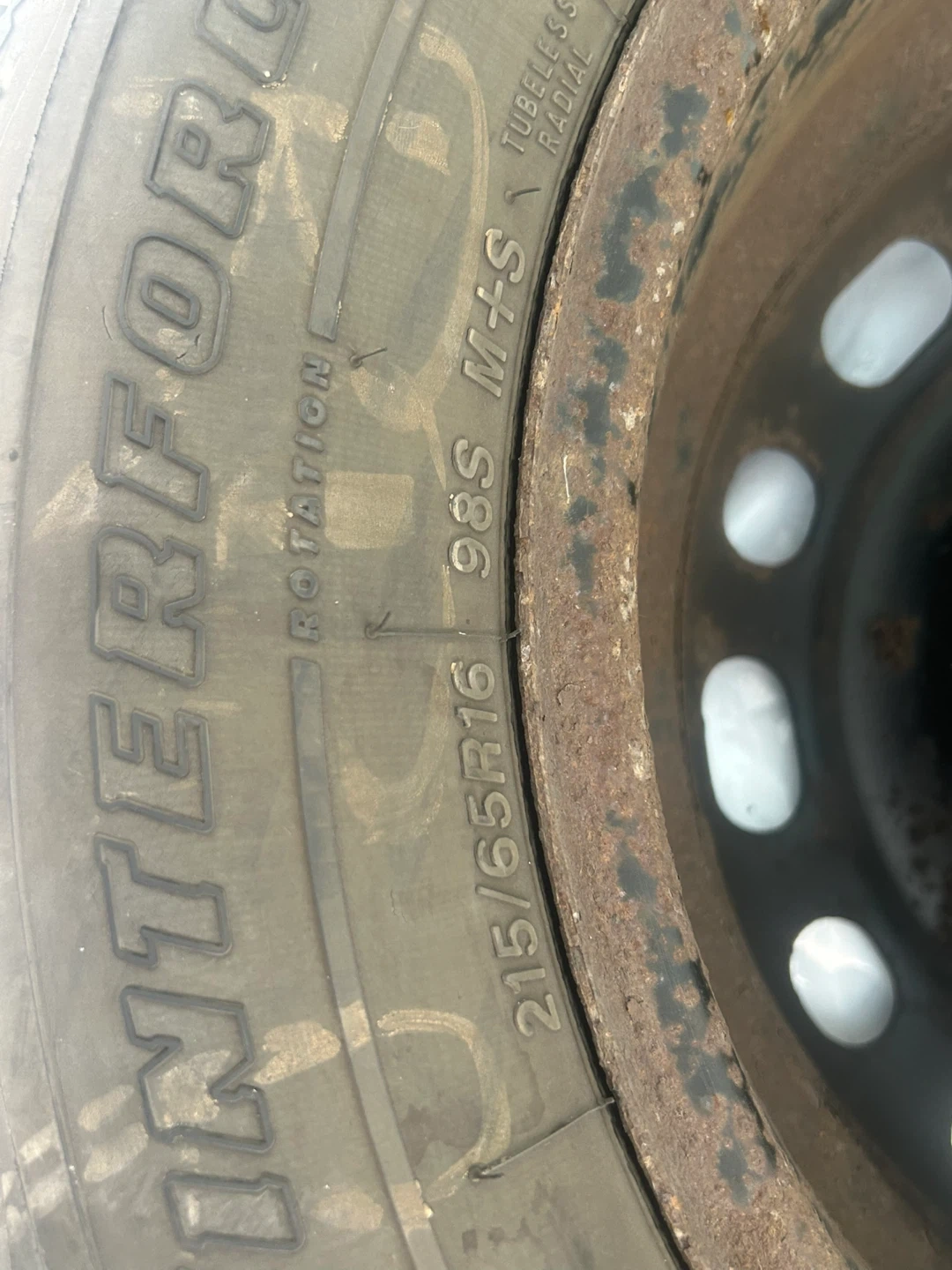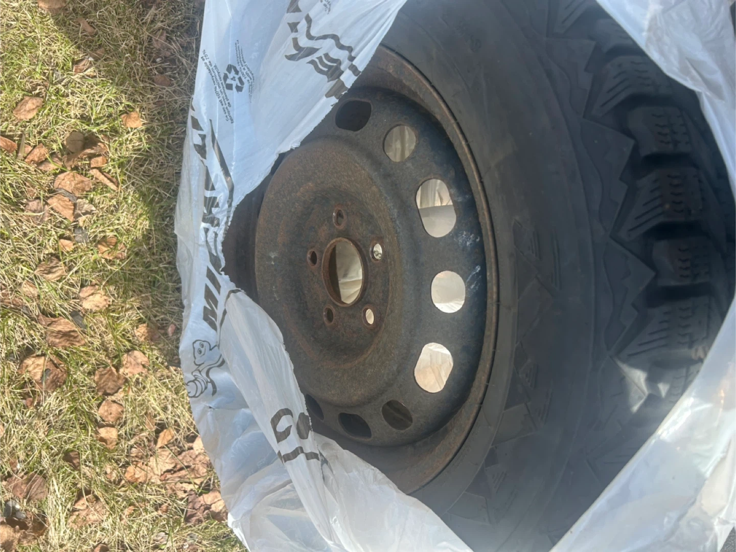 Selling a set of four Michelin winter tires mounted on steel rims. These are M+S rated radial tires, tubeless. The tires appear to be in good condition for winter driving.