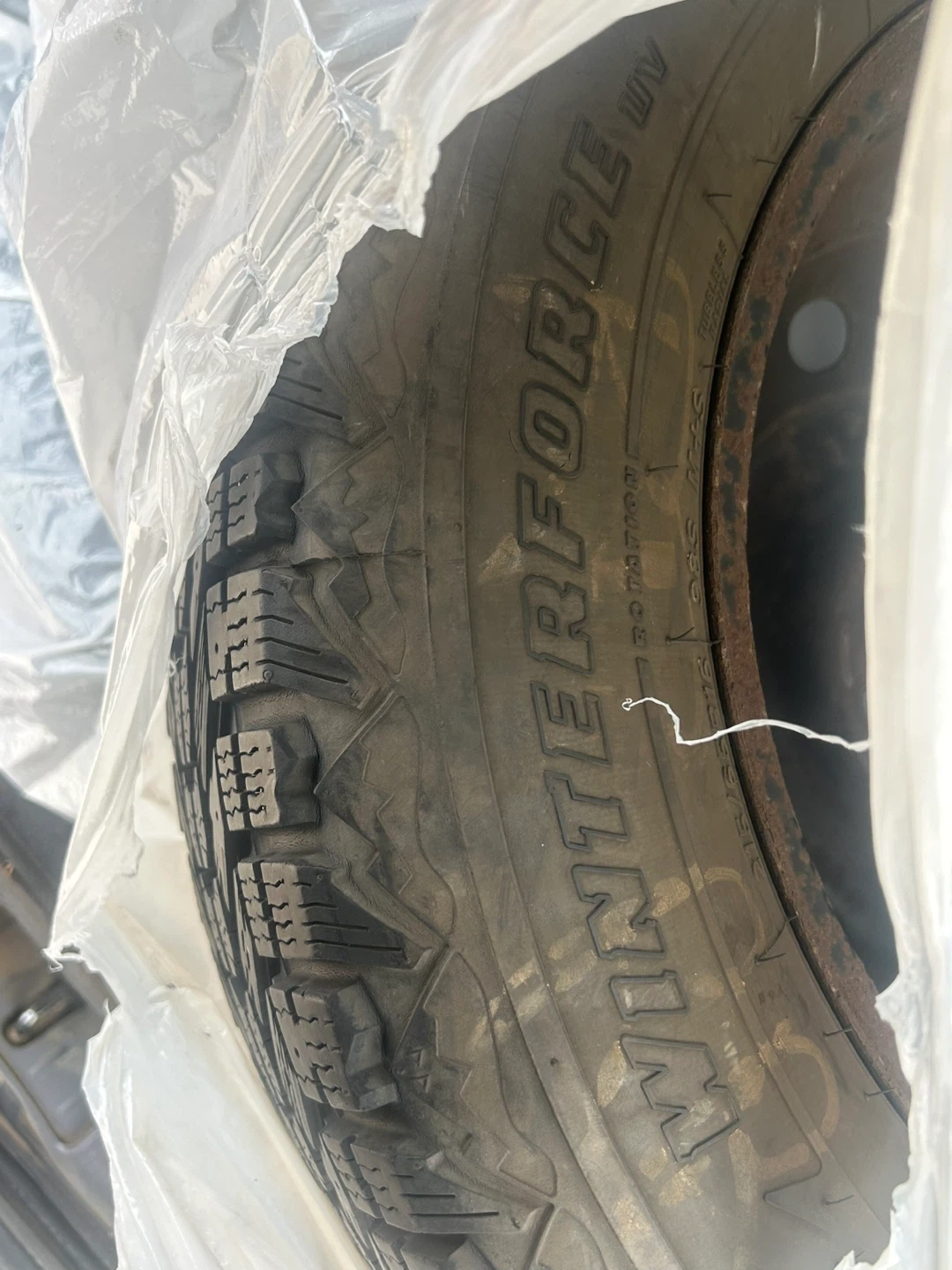 Selling a set of four Michelin winter tires mounted on steel rims. These are M+S rated radial tires, tubeless. The tires appear to be in good condition for winter driving.