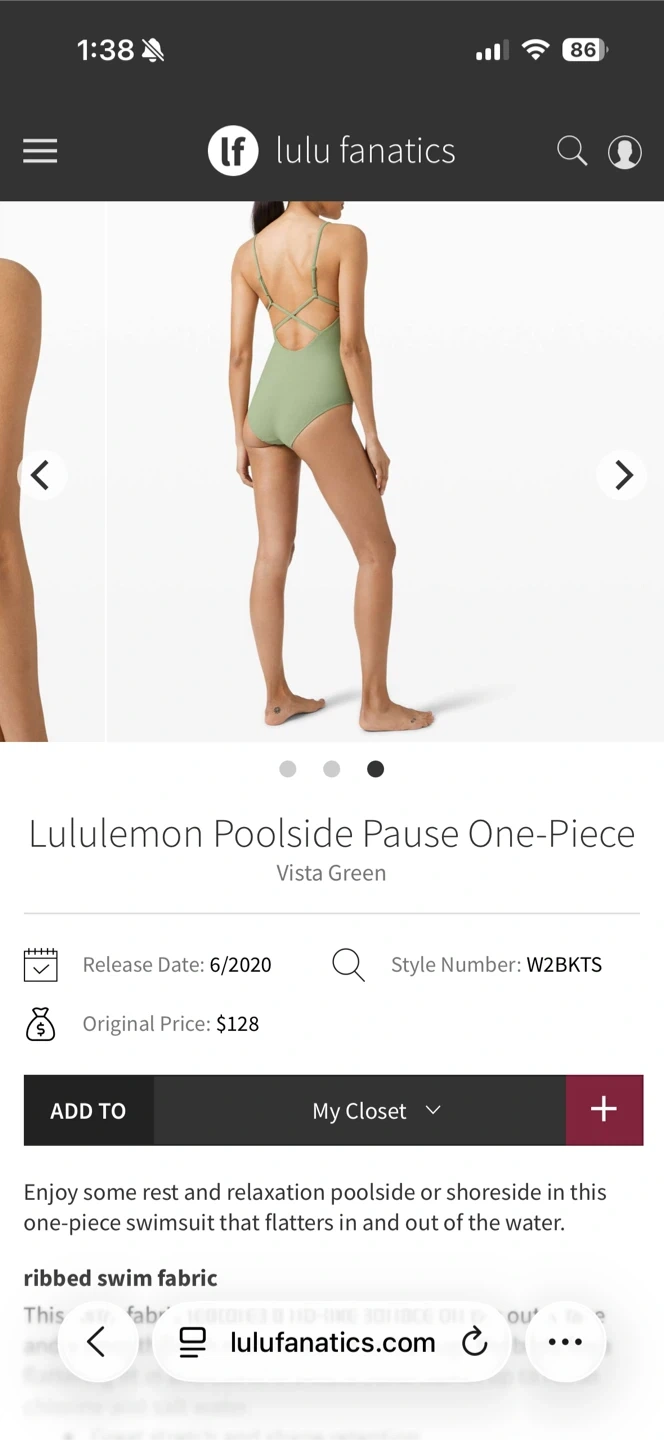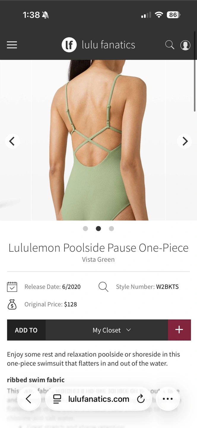 Selling a Lululemon Poolside Pause One-Piece swimsuit in Vista Green, size 4! This one-piece swimsuit is made with ribbed swim fabric. Originally priced at $128, it's such a stylish choice which I’ve sometimes paired with shorts during a beach day.