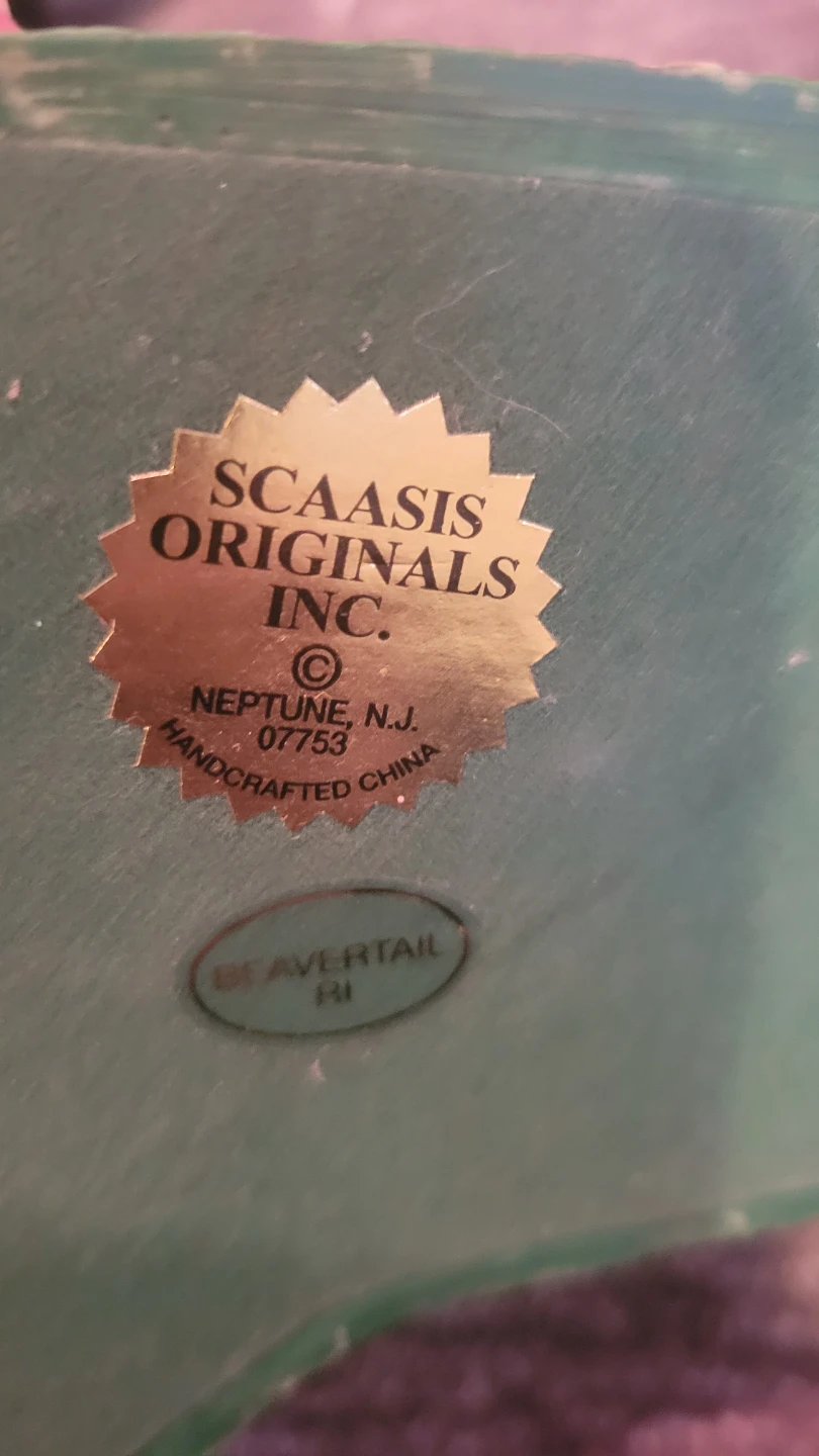 Selling a charming Scaasis Originals lighthouse figurine. It's a handcrafted piece from Neptune, NJ, with a Beavertail RI mark. A delightful addition to any collection or home decor