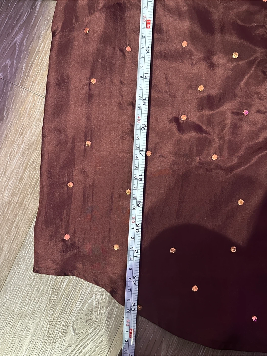 Please see pictures for exact measurements. The top has no stretch. It is recommended to be slightly loose to fit comfortably and for the fabric to drape nice.