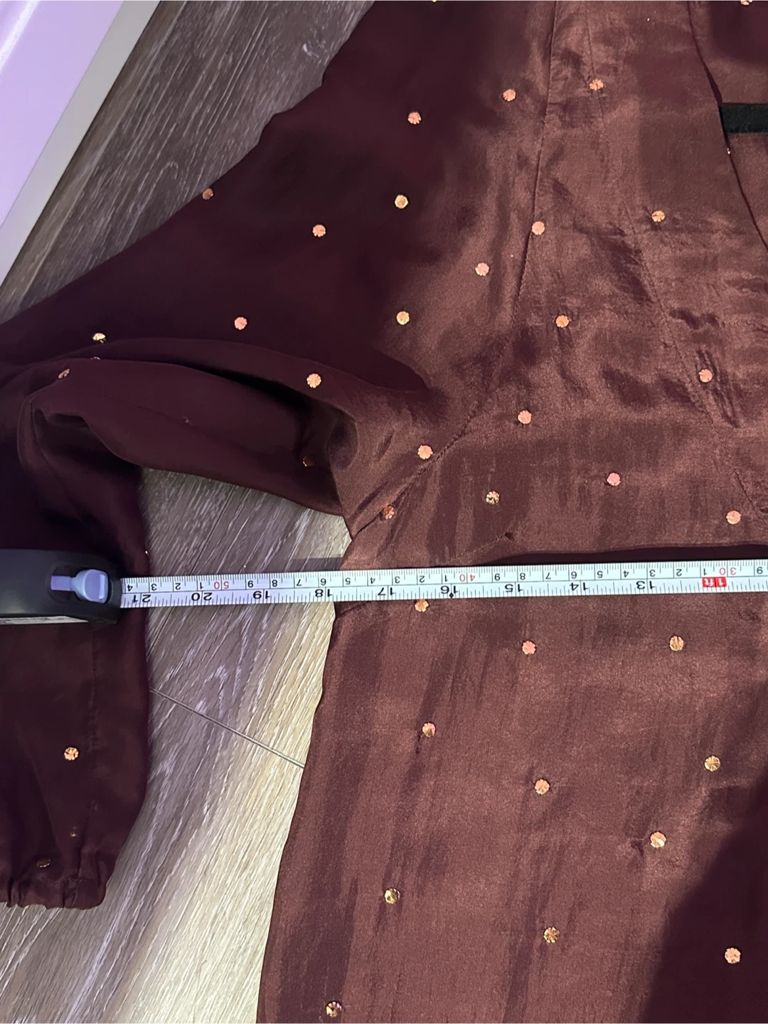 Please see pictures for exact measurements. The top has no stretch. It is recommended to be slightly loose to fit comfortably and for the fabric to drape nice.