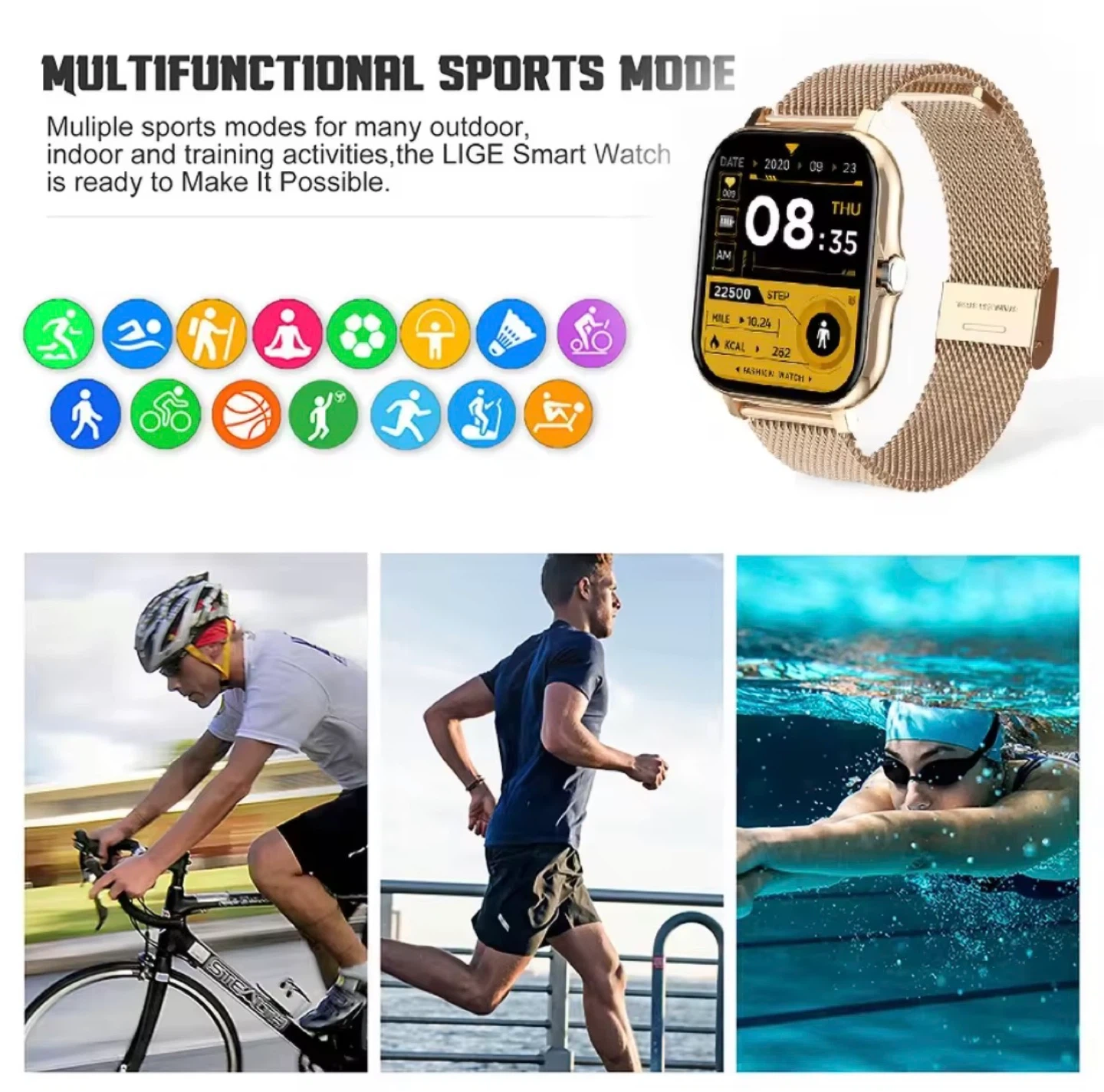 This all-in-one smart watch comes with amazing features to keep you connected and active: