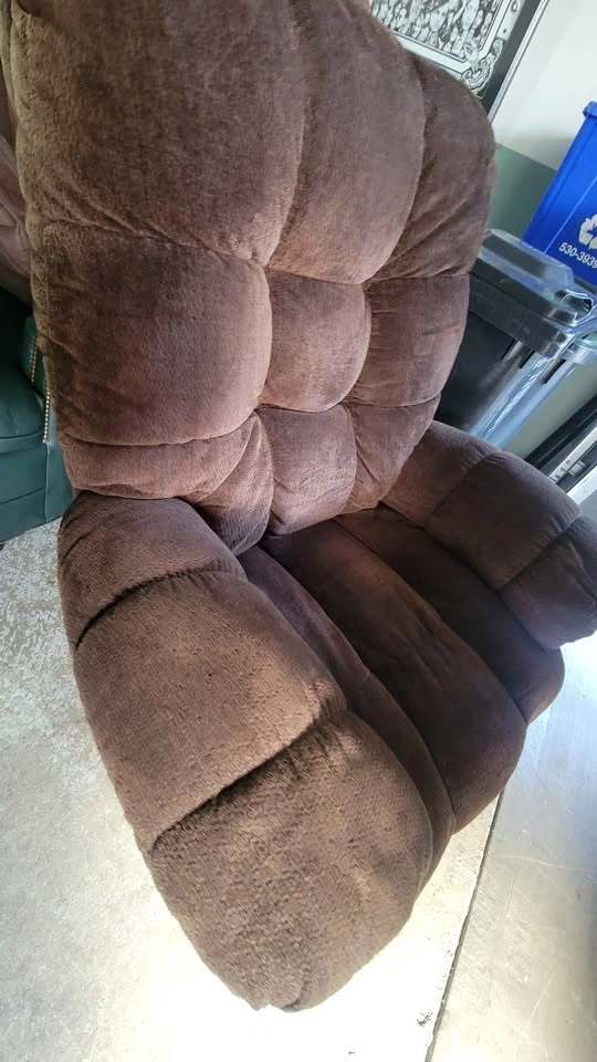 Comfortable brown swivel rocker recliner. Has a lever on the side to recline manually. Can lay almost flat and also rocks and swivels for your comfort and convenience. No damage or wear issues. Has just been vacuumed and freshened up with high-pressure steam. Located in the Langley Township area near Home Depot. Can be picked up anytime during the day.