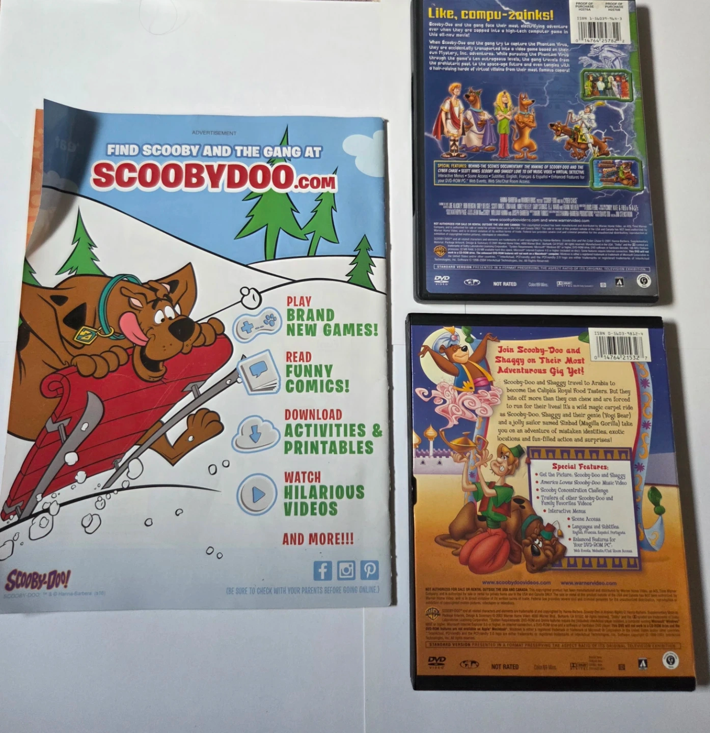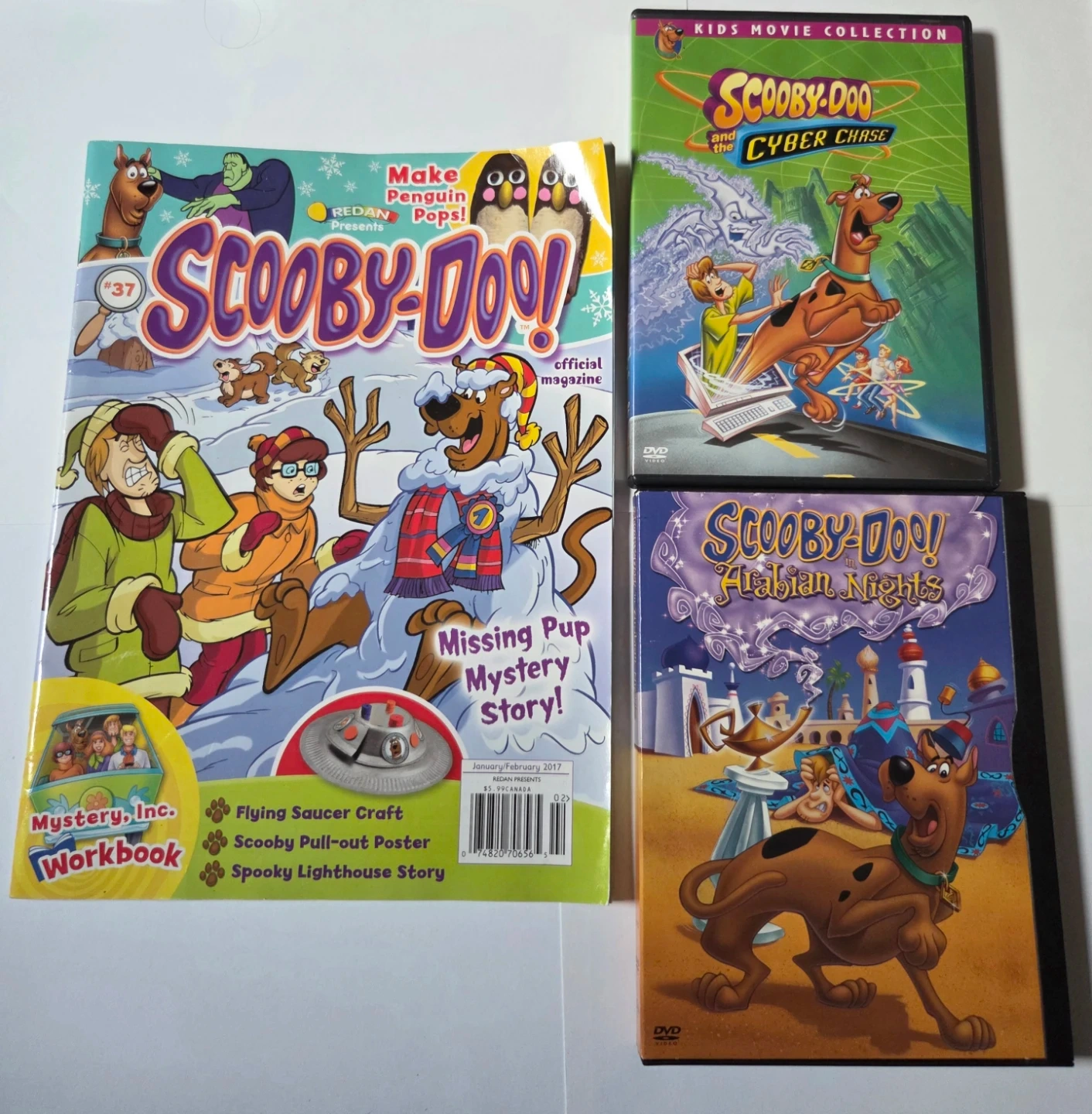 Hi, I'm selling a Scooby Doo magazine and 2 Dvds: Cyber Chase and Arabian Nights. Dvds are in OK condition and still play.