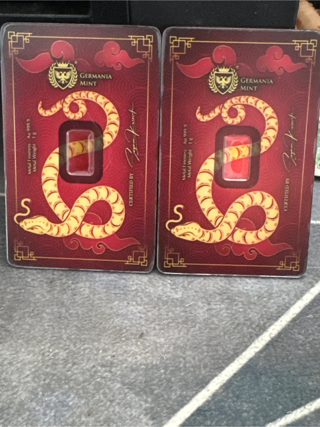 2x Germania Mint 1g Gold Bar - Year of the Snake 2025π