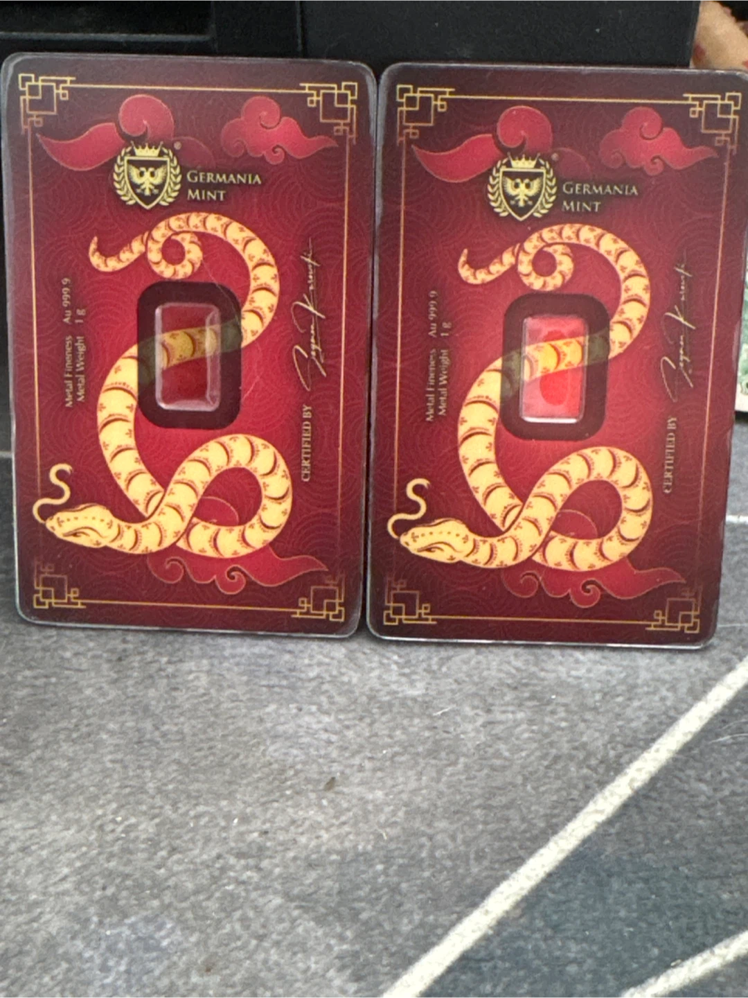 2x Germania Mint 1g Gold Bar - Year of the Snake 2025π