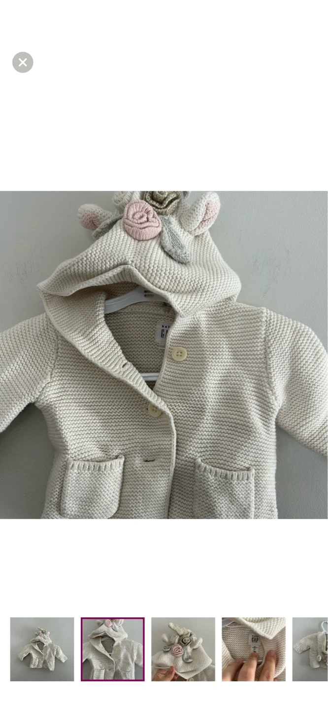 Gap brand. Button up hooded knit cardigan. Unicorn themed hood. Size 0/6m. Brand new condition $8