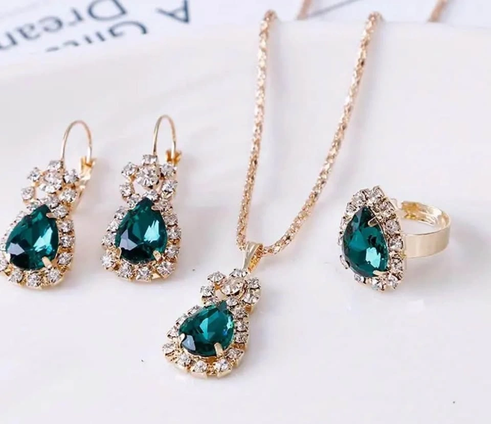 Costume jewelry available in many sets and colors. Rings are $15, and jewelry sets are $25. Great for any occasion like parties, birthdays, proms, Valentine's Day, vacations, or weddings. See my other posts.