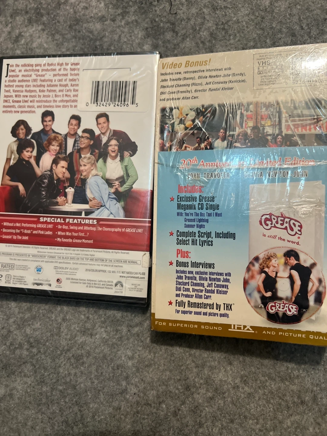 Includes the Grease movie SPECIAL EDITION on VHS BRAND NEW. Unopened and standard DVD used.