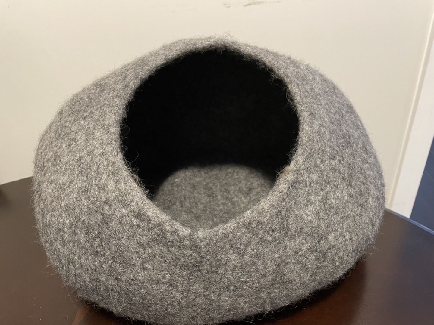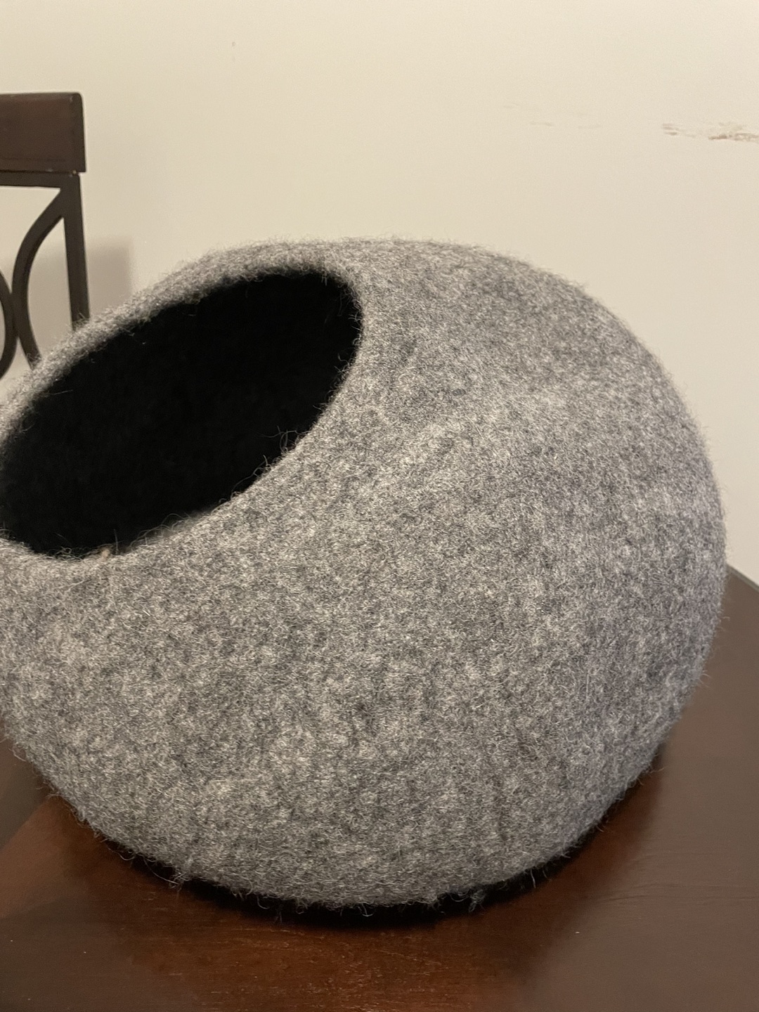 This wool cave and safe cocoon is almost new as my kitten turned out to be an extrovert and prefers to sleep in the open (Siberian cats are very extroverts and playful). You can see his insta page @neo.chiquito He used it a couple of times when he was younger but it would be a perfect hiding spot for shy furbabies.