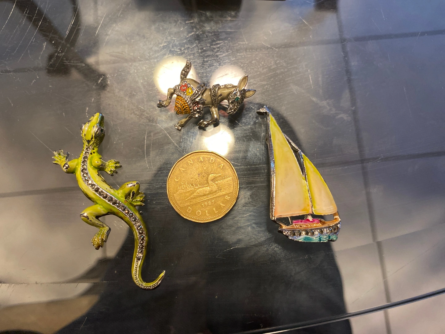 Sailboat, Lizard, Donkey Fashion Brooch