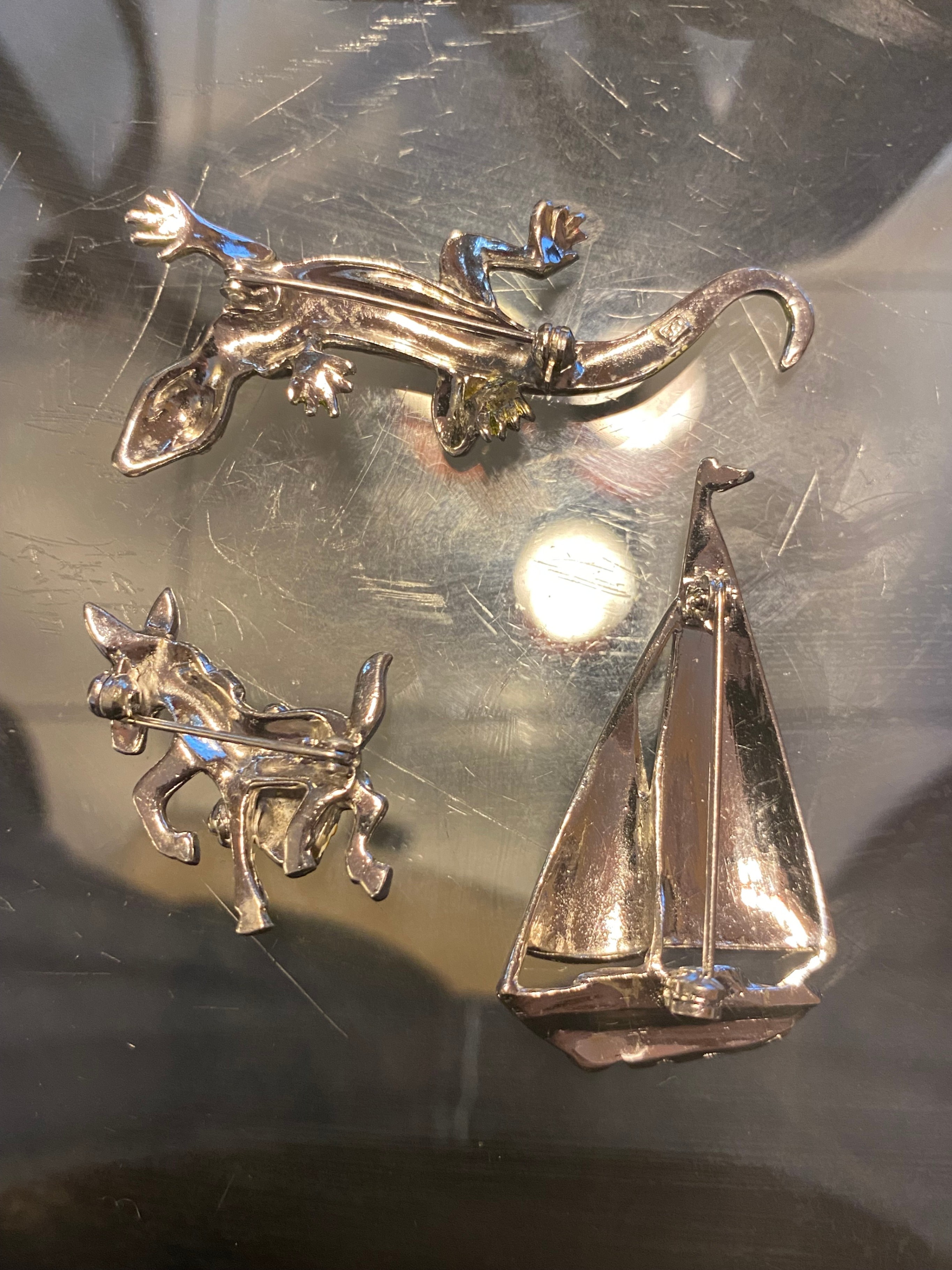 Sailboat, Lizard, Donkey Fashion Brooch