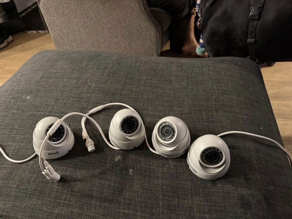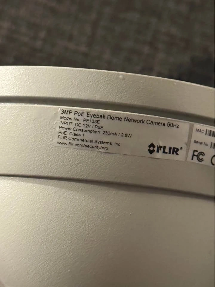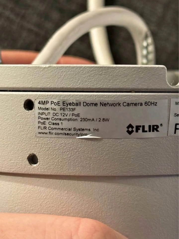 Functional FLIR PoE Eyeball Dome Network Cameras for sale. Have both 3MP (model PE133E) and 4MP (model PE133F) versions. These are Power over Ethernet (PoE) cameras. They can also use DC 12V power. PoE Class 1 with 2.8W power consumption. Good for keeping an eye on things.