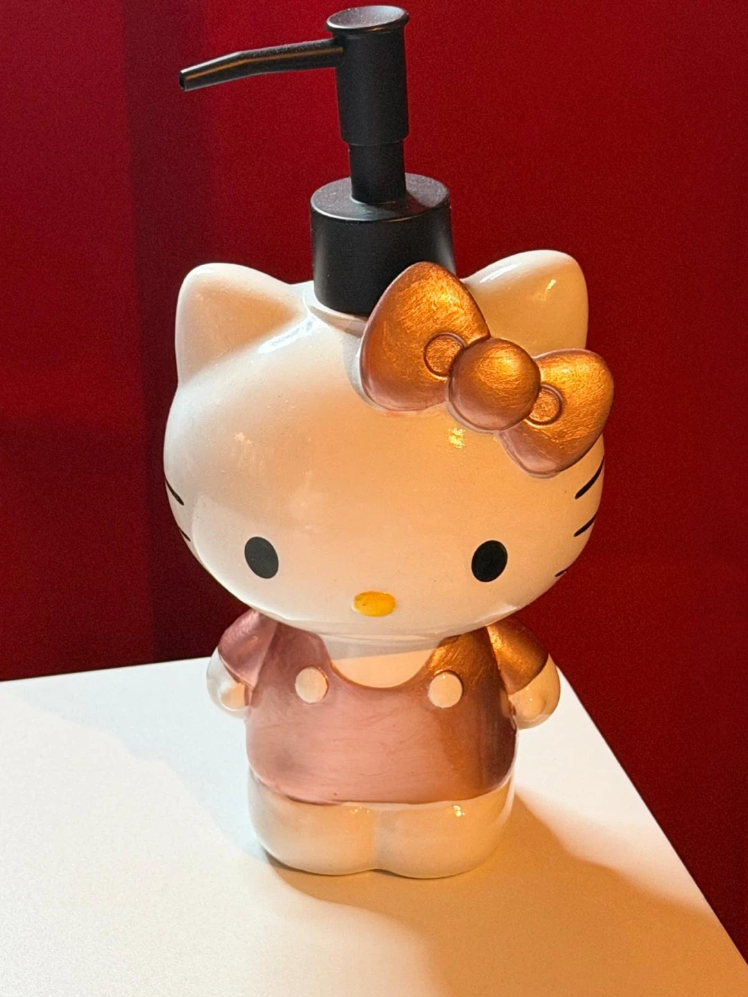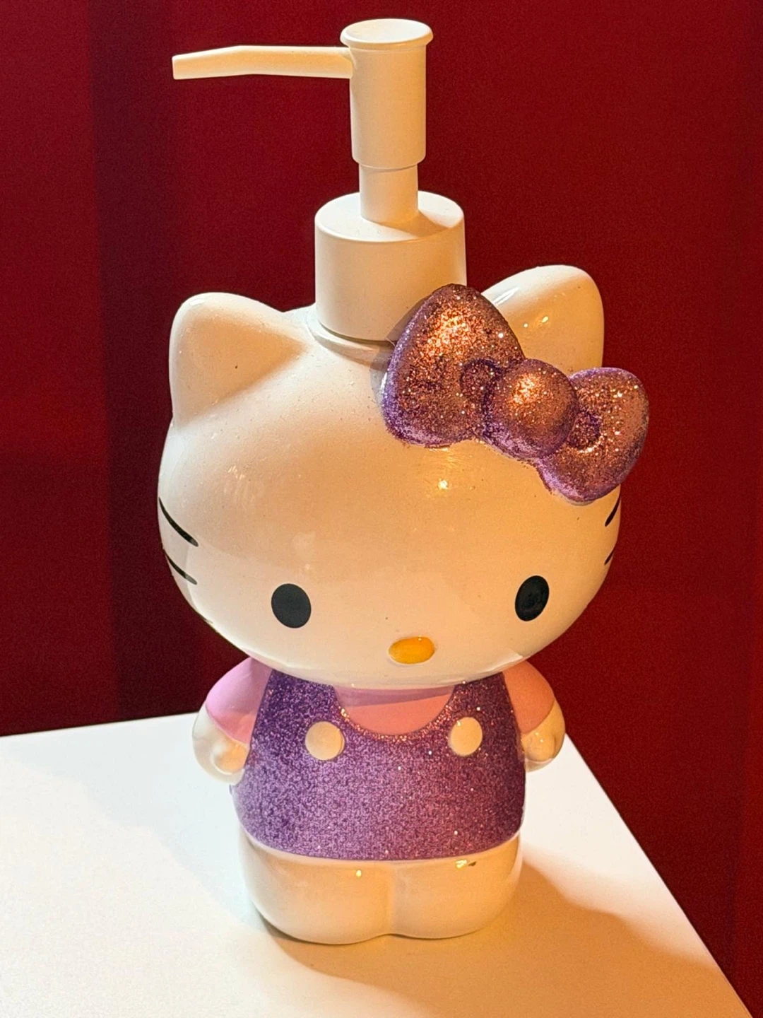 This cute Hello Kitty soap dispenser is perfect for adding a touch of fun to any bathroom or kitchen. It's a great way to dispense liquid soap or lotion. Makes a fun gift for Hello Kitty fans!