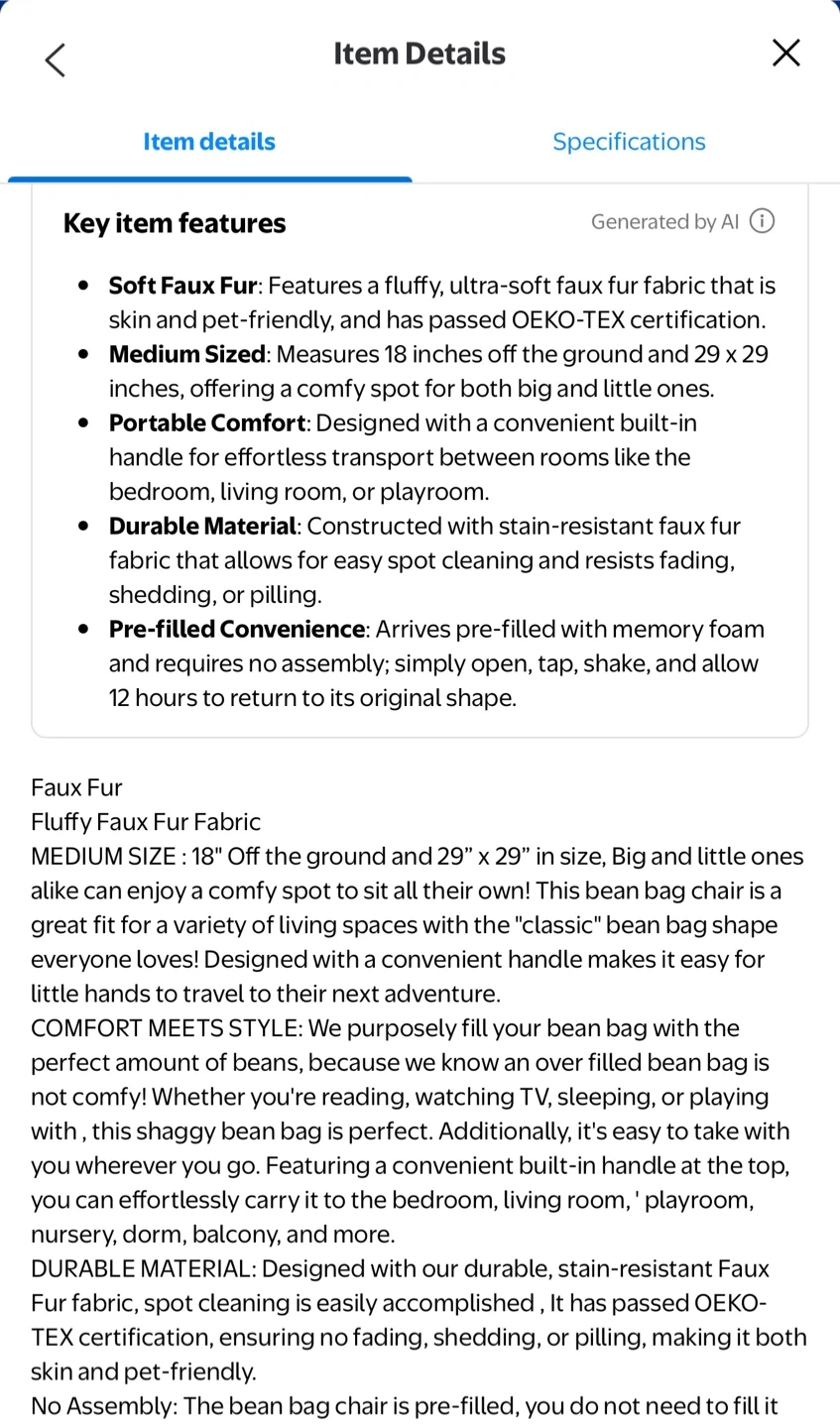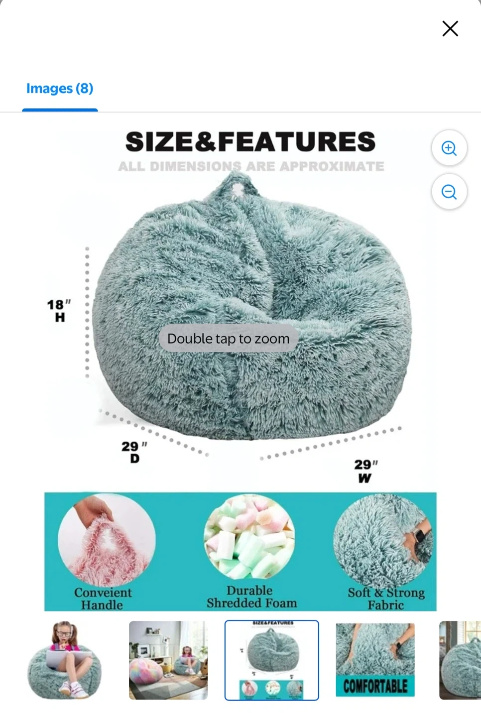 Fluffy Faux Fur Bean Bag Chair 29”x29” – Open Box