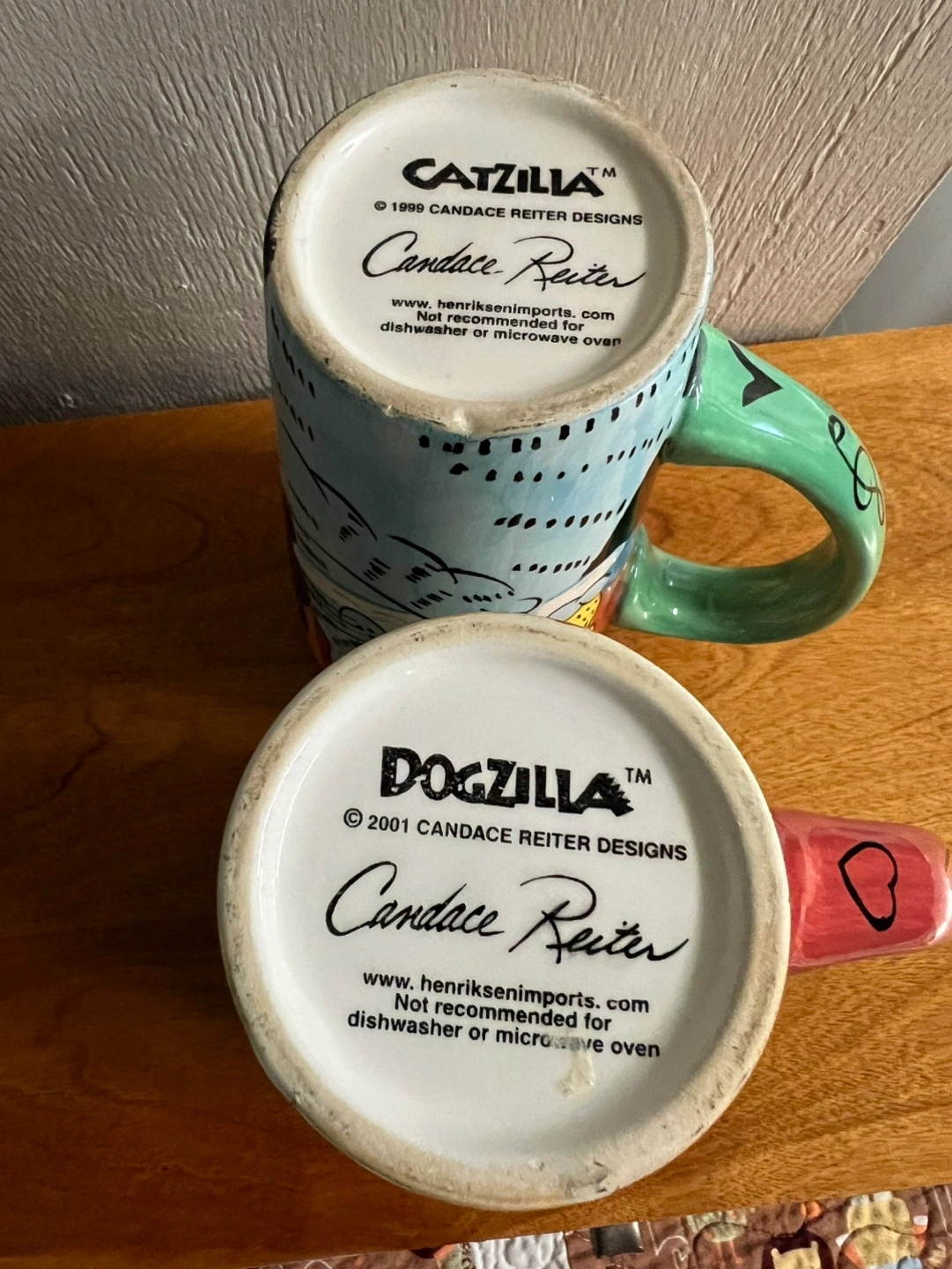 Set of Four Candace Reiter Catzilla and Dogzilla Mugs