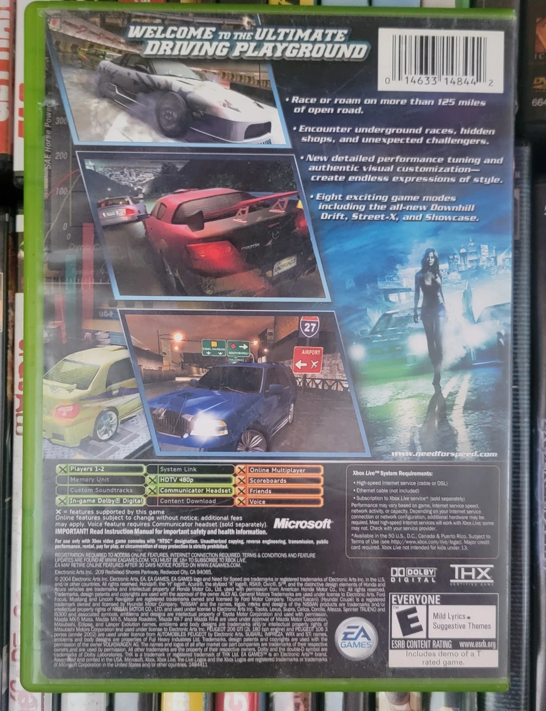 This is the Need for Speed Underground 2 game for the original Xbox. It's an open-world racing game that features customization options for cars. Supports 1-2 players.