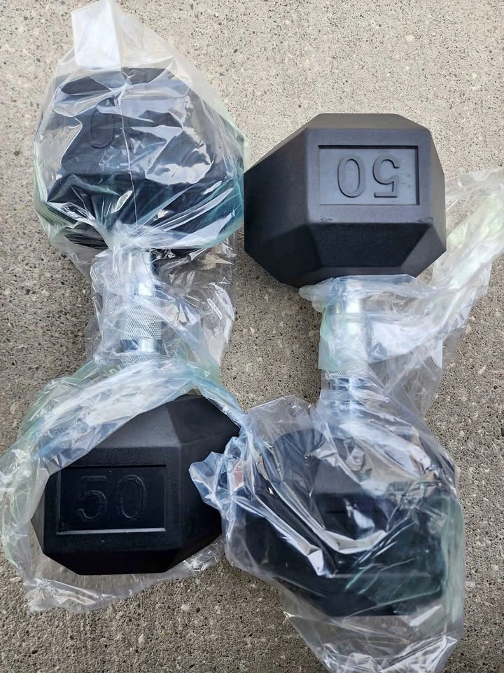 BRAND NEW Rubber Hex Dumbbell pair, 50 lbs each. FREE DELIVERY WITHIN NORTH YORK & VAUGHAN.