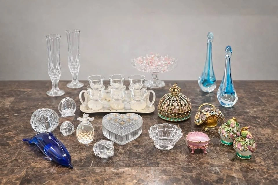 Includes crystal pieces, glassware, trinket boxes, and unique decor!! π