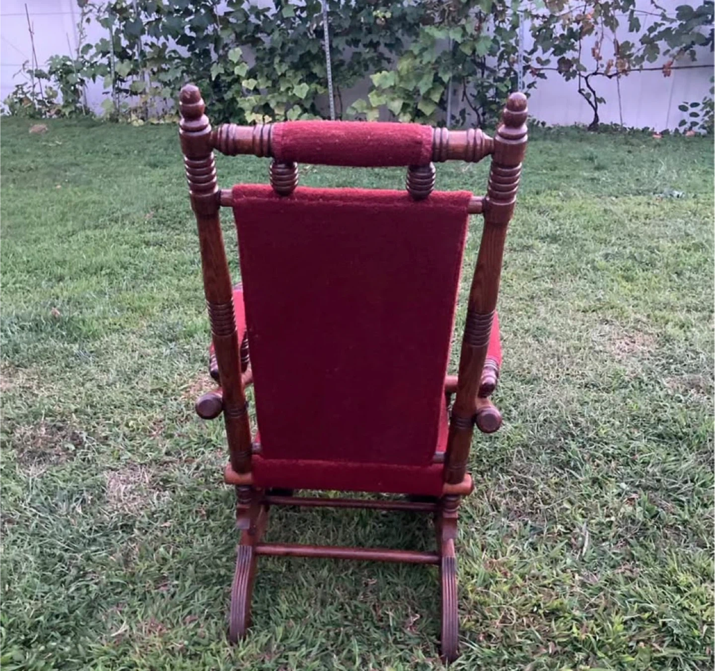 Antique Wooden Rocking Chair - Red Upholstery