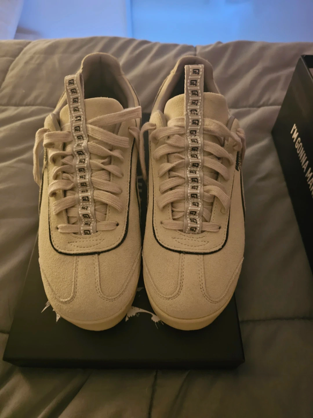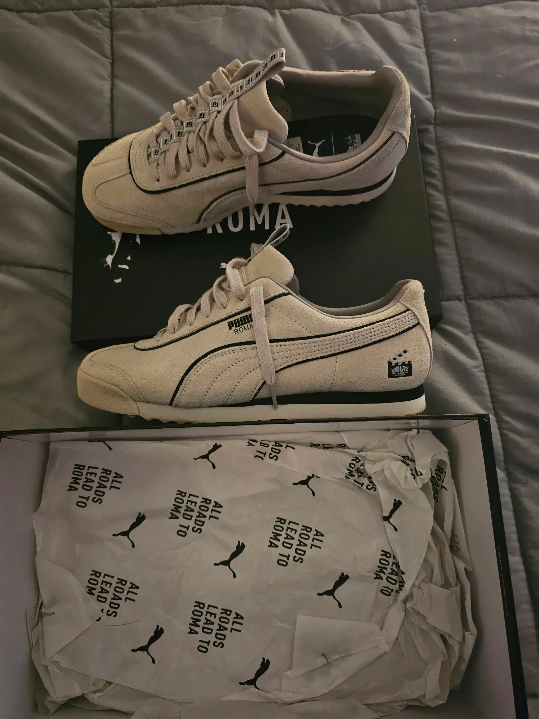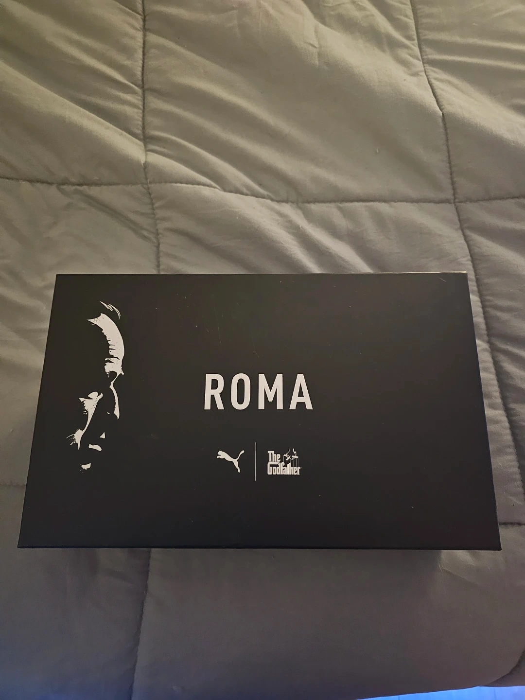 These Puma Roma sneakers celebrate The Godfather. They're made with a light-coloured suede material. Comes with original box and tissue paper. A cool collectible for fans!