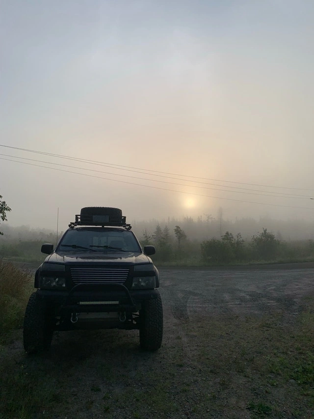 Many parts available for a 2006 Chevy Colorado. Includes full aluminum skid plates, tailgate, bull bar with shackles, grill, headlights, taillights, leather seats, tow hitch, doors, mirrors, 17” rims on 35” tires, full-size spare, roll-up tonneau cover, and a light bar.