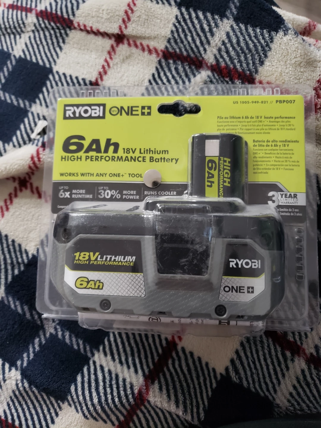 This is a Ryobi ONE+ 18V 6Ah Lithium High Performance Battery. It works with any ONE+ tool and offers up to 6x more runtime and up to 30% more power. The battery is designed to run cooler.