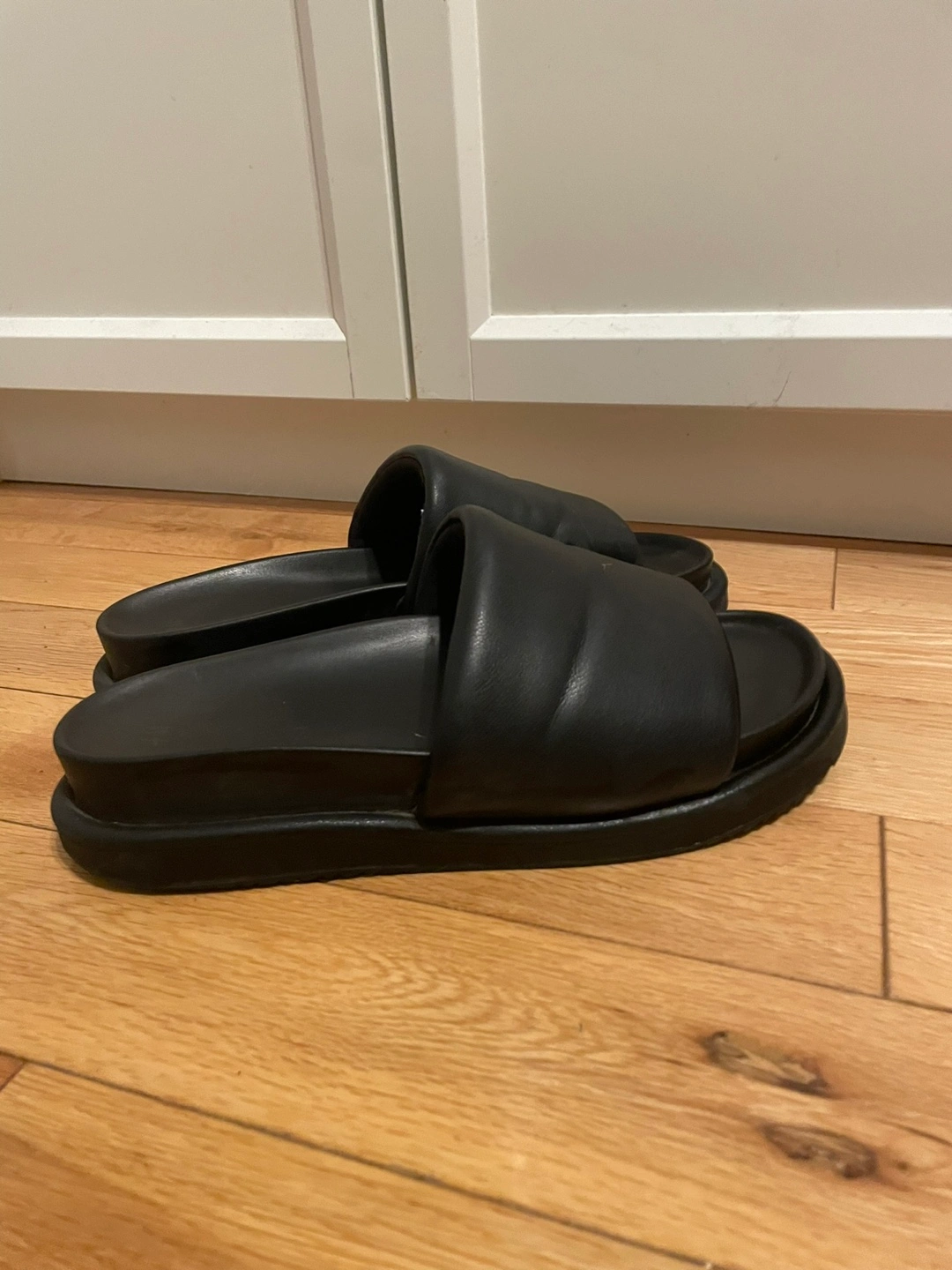 Selling a pair of H&M black slides in size 8. They're in great shape and super comfy for everyday wear. Perfect for slipping on around the house or running quick errands!