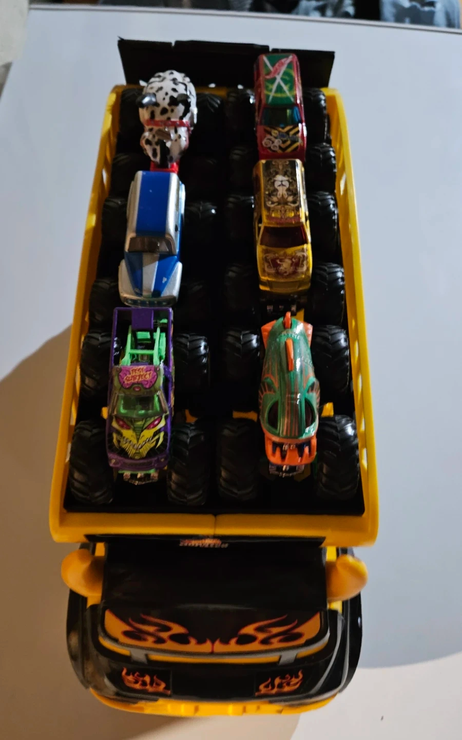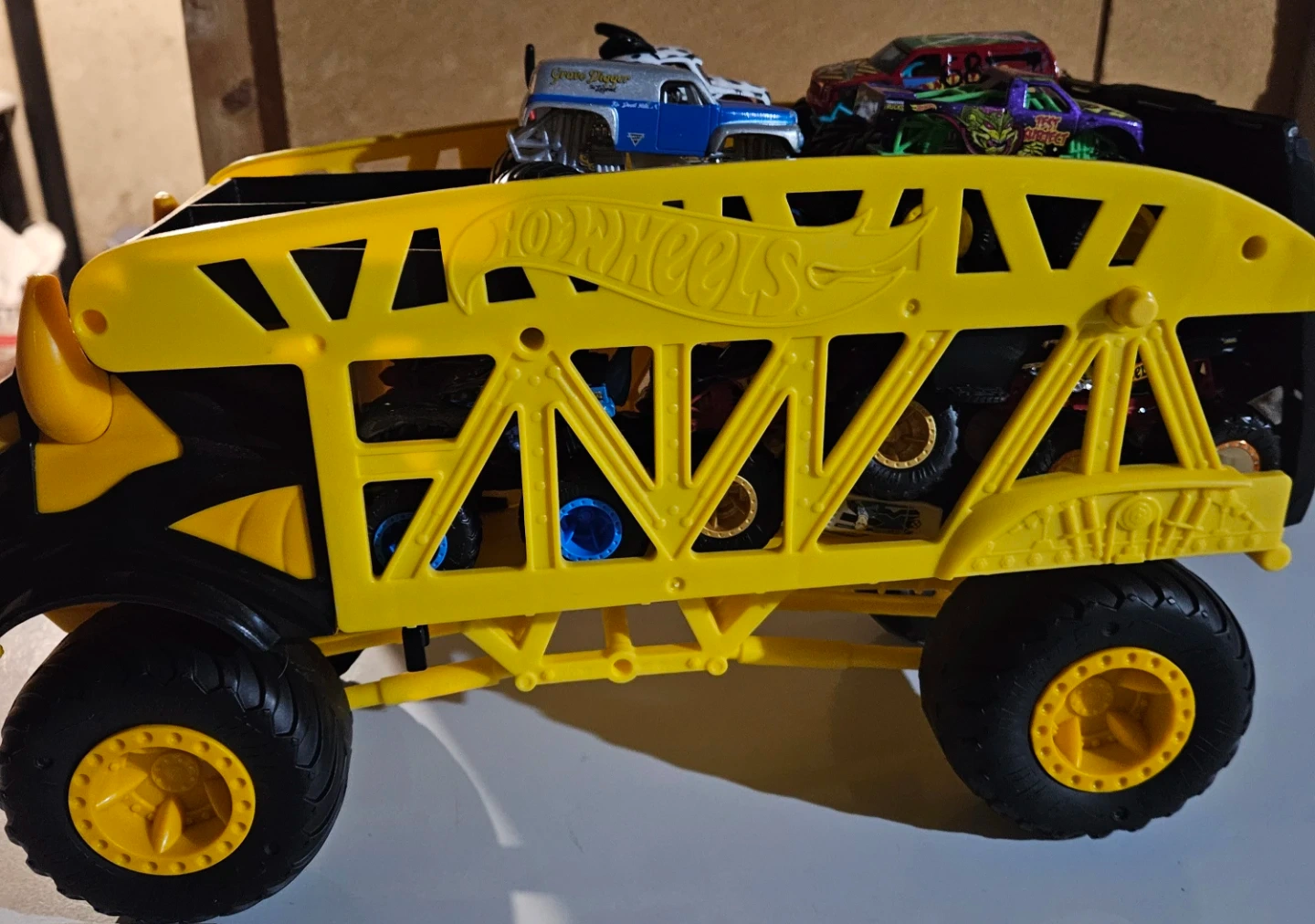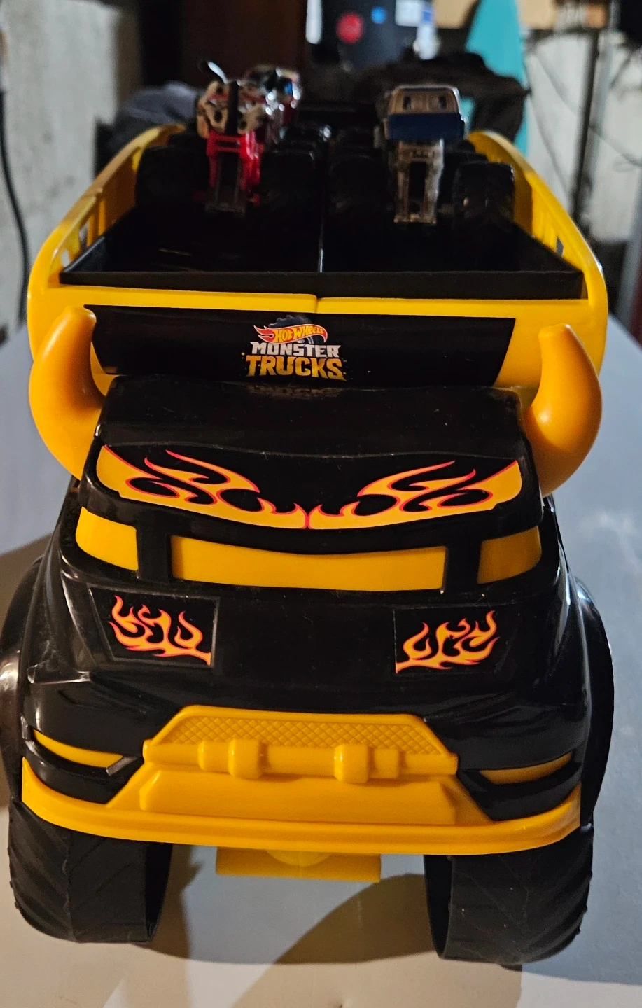 Hot Wheels Monster Truck carrier that comes with mini monster trucks! The carrier is yellow and black and can hold a bunch of mini trucks. Comes with 12 mini monster trucks. Not all are Hot Wheels. Pick up east mountain. Cash only please.