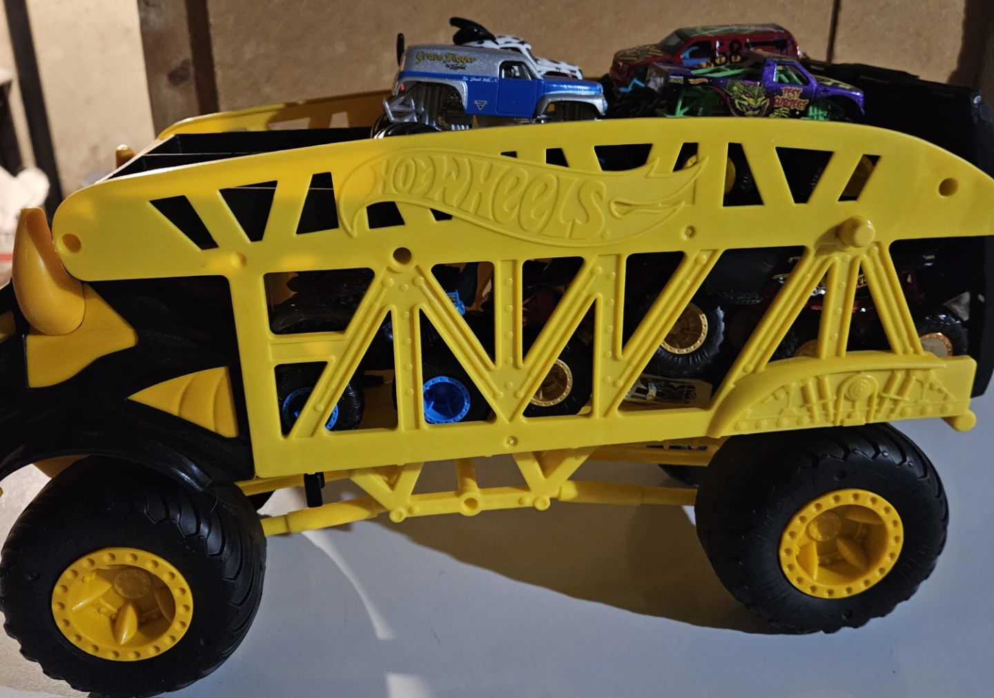 Hot Wheels Monster Truck carrier that comes with mini monster trucks! The carrier is yellow and black and can hold a bunch of mini trucks. Comes with 12 mini monster trucks. Not all are Hot Wheels. Pick up east mountain. Cash only please.