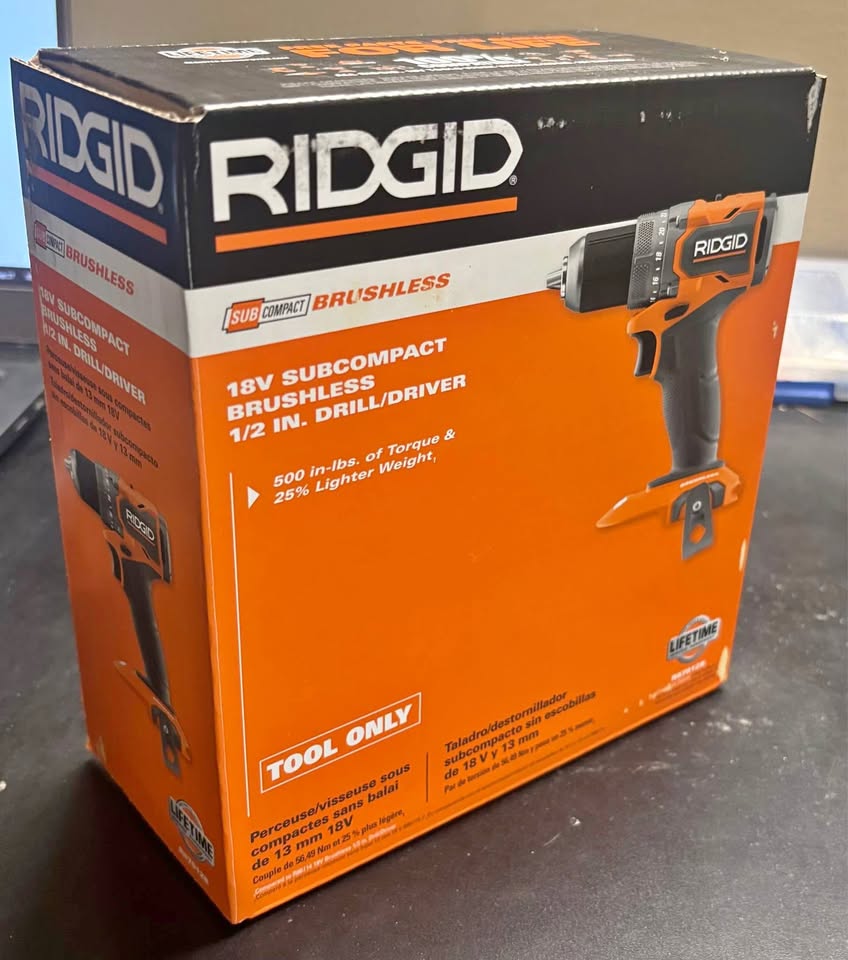 RIDGID 18V Sub-Compact Brushless Cordless 1/2-inch Drill/Driver (Tool-Only) Model # R87012B. This is brand new still in the unopened box. Pick up in SW Airdrie.