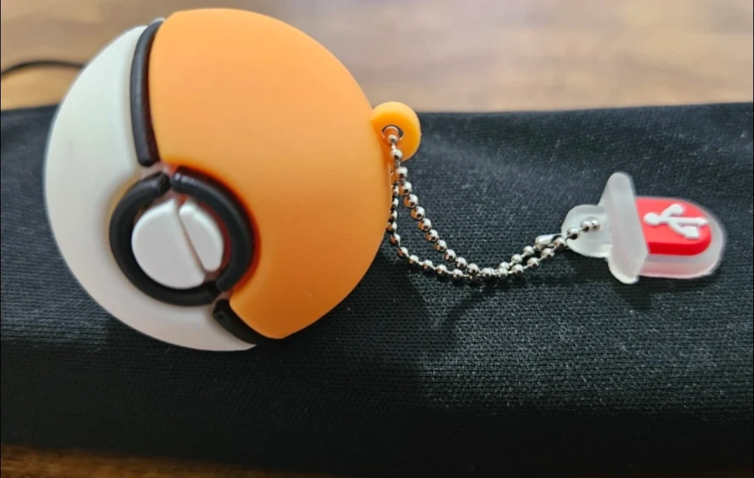This unique 60 GB USB flash drive is designed to look like a Poké Ball. It comes with a protective cap and a keyring attachment. Stores your important files in a fun way!
