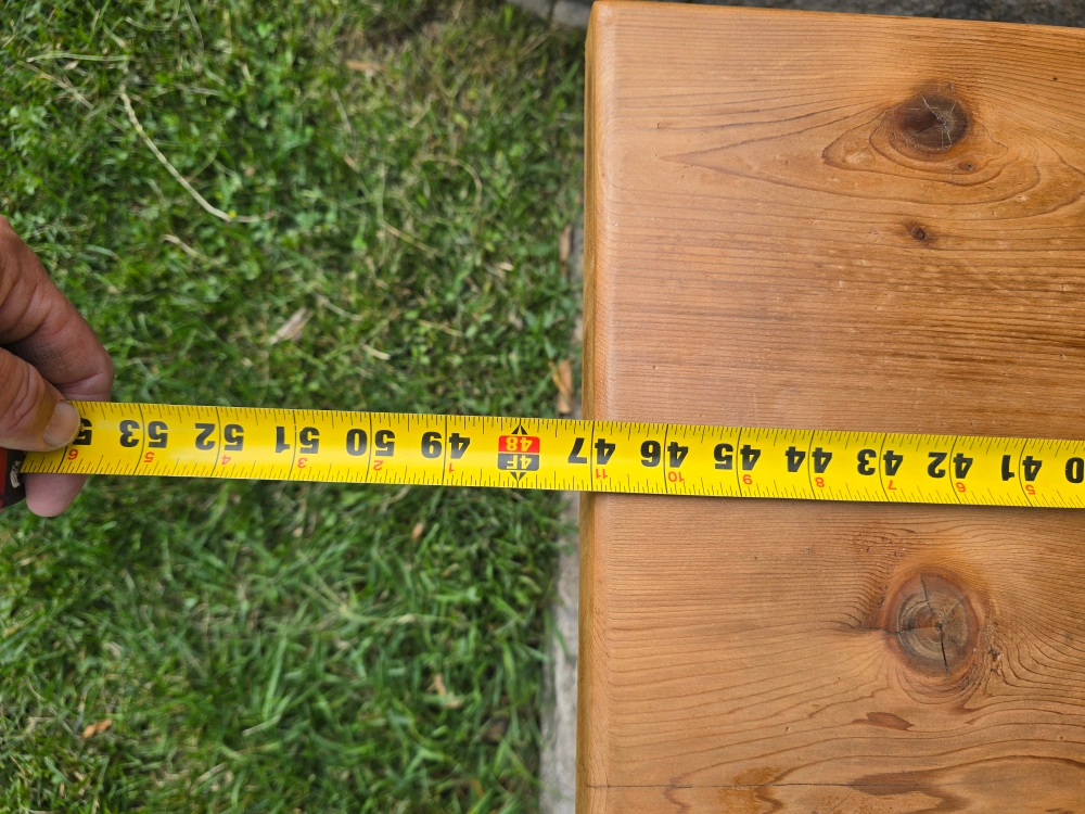 This solid cedar coffee table is perfect for adding a rustic touch to your living space, inside or out. It's sturdy and has a beautiful natural finish. This table has clearly been used, but is ready for your home! Perfect for a coffee table or as a plant stand.
