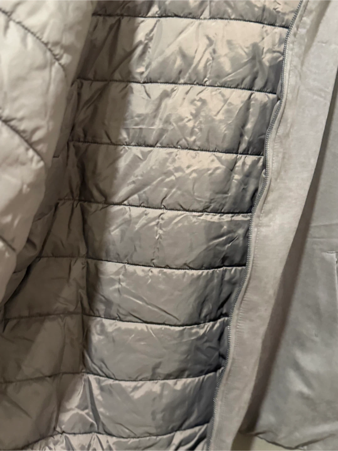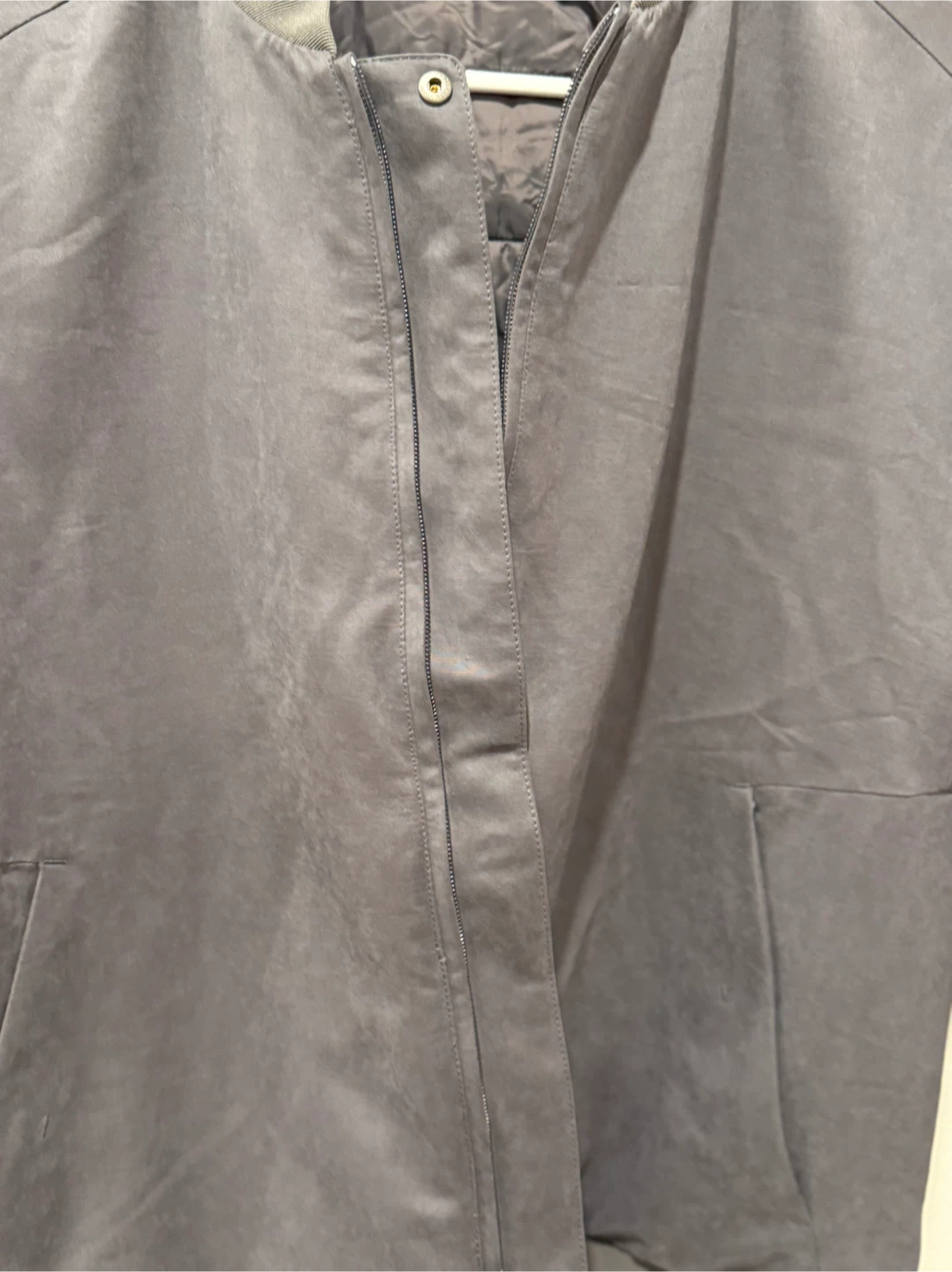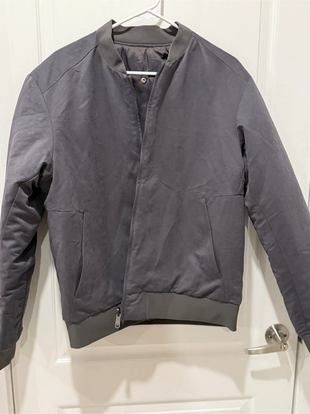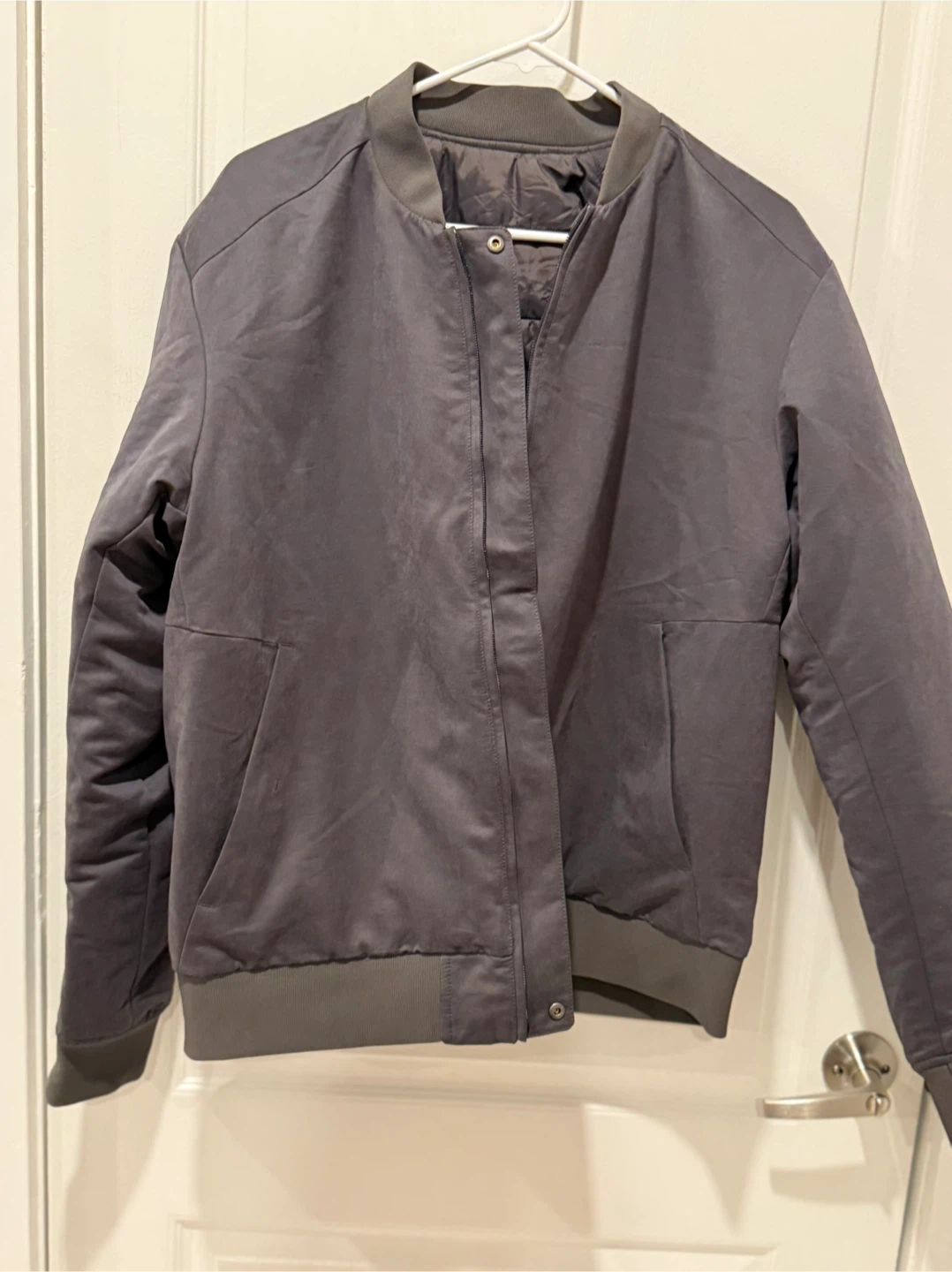 Selling a stylish grey bomber jacket. It's in great condition and has a quilted lining for extra warmth. Perfect for layering during the cooler months!